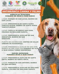 - 🐈🐕🐩TENDRÁ HUAMANTLA JORNADA DE VACUNACIÓN ANTIRRÁBICA CANINA Y FELINA🐈🐕🐩