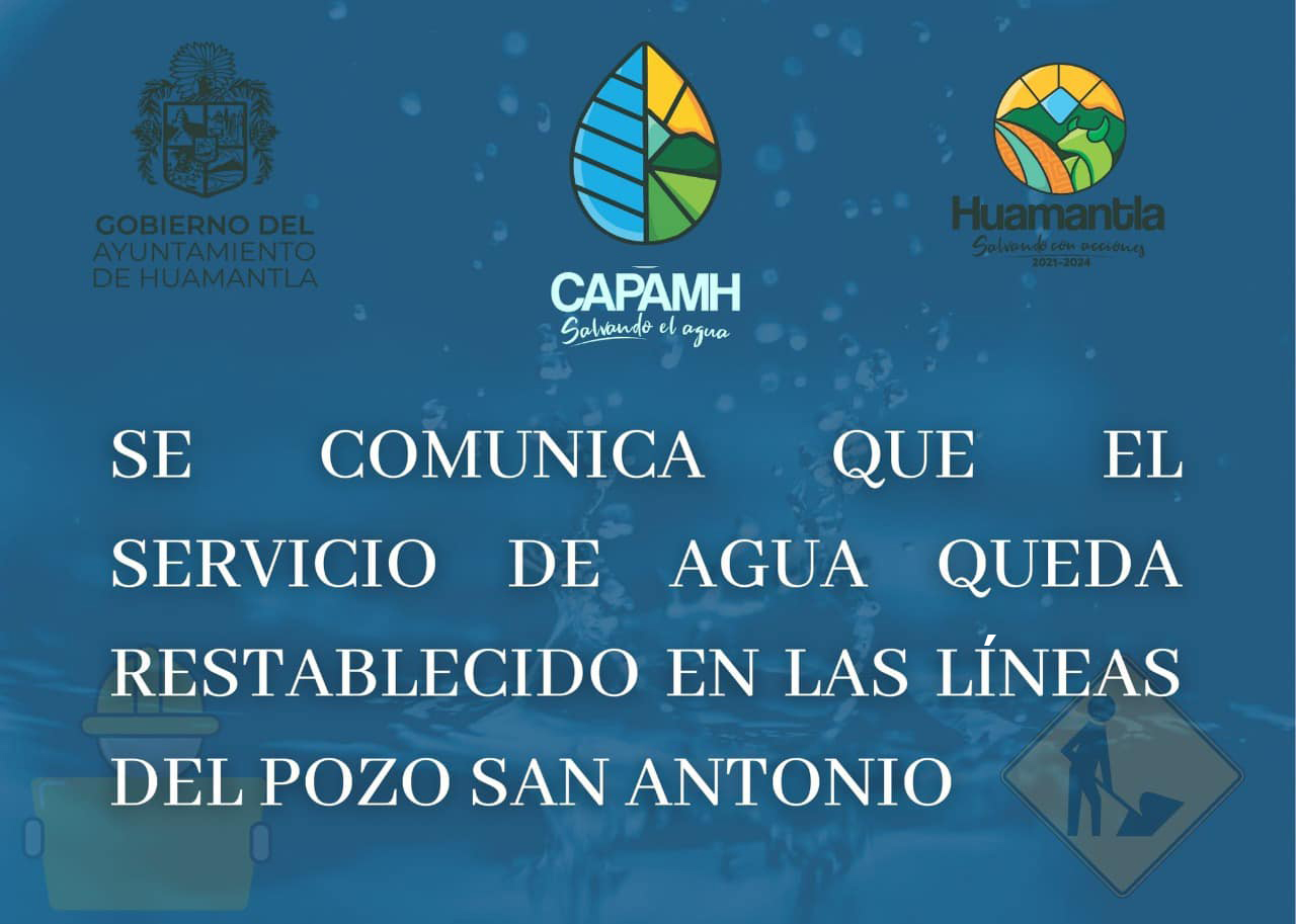 Luego de realizar maniobras de mantenimiento en tres válvulas de la red hidráulica del pozo de San Antonio, la Comisión de Agua Potable y Alcantarillado del Municipio de Huamantla (Capamh), informó que ha quedado restablecido el servicio de agua en siete colonias de la ciudad.