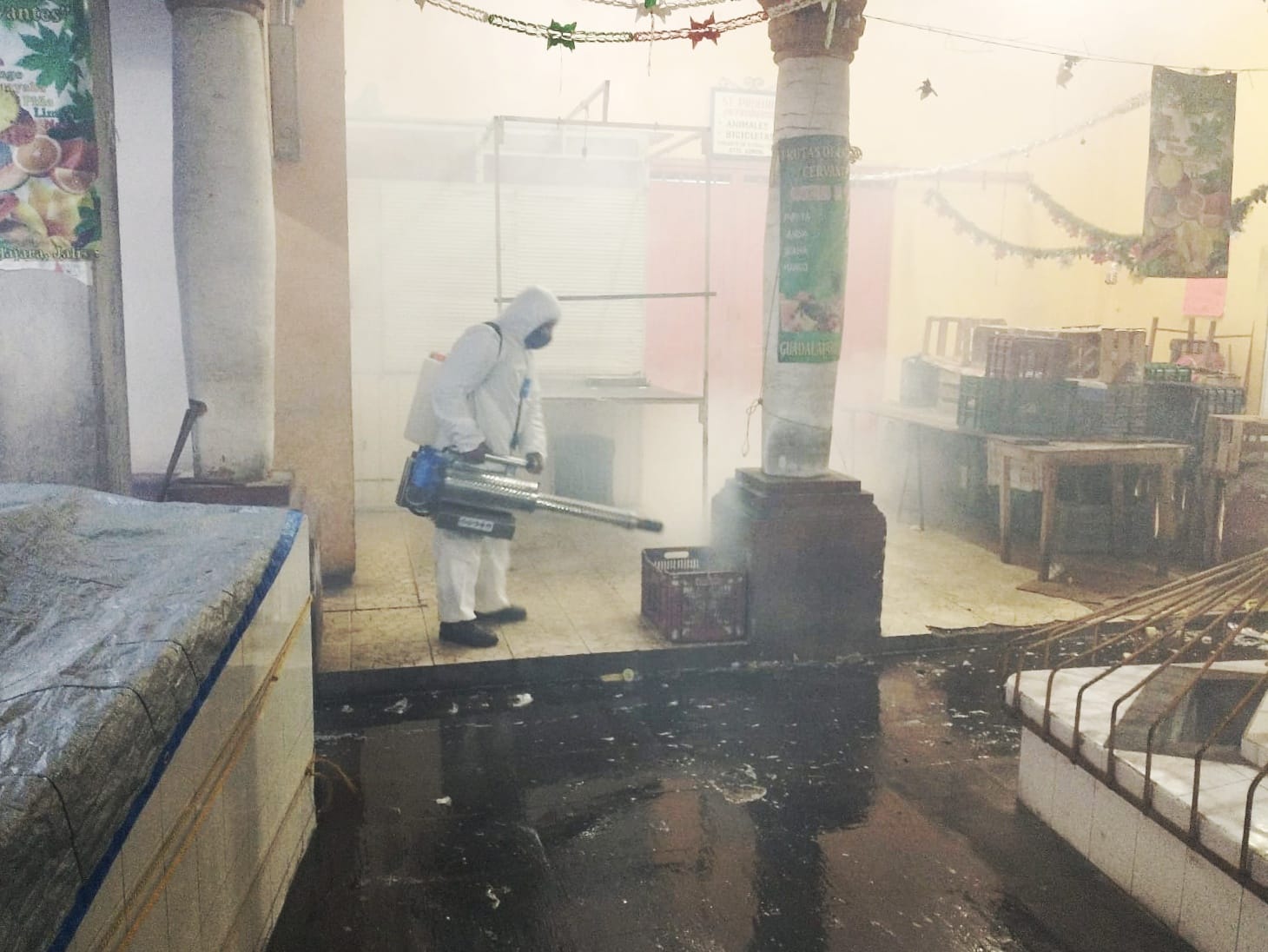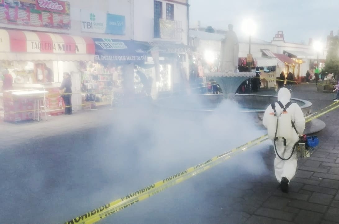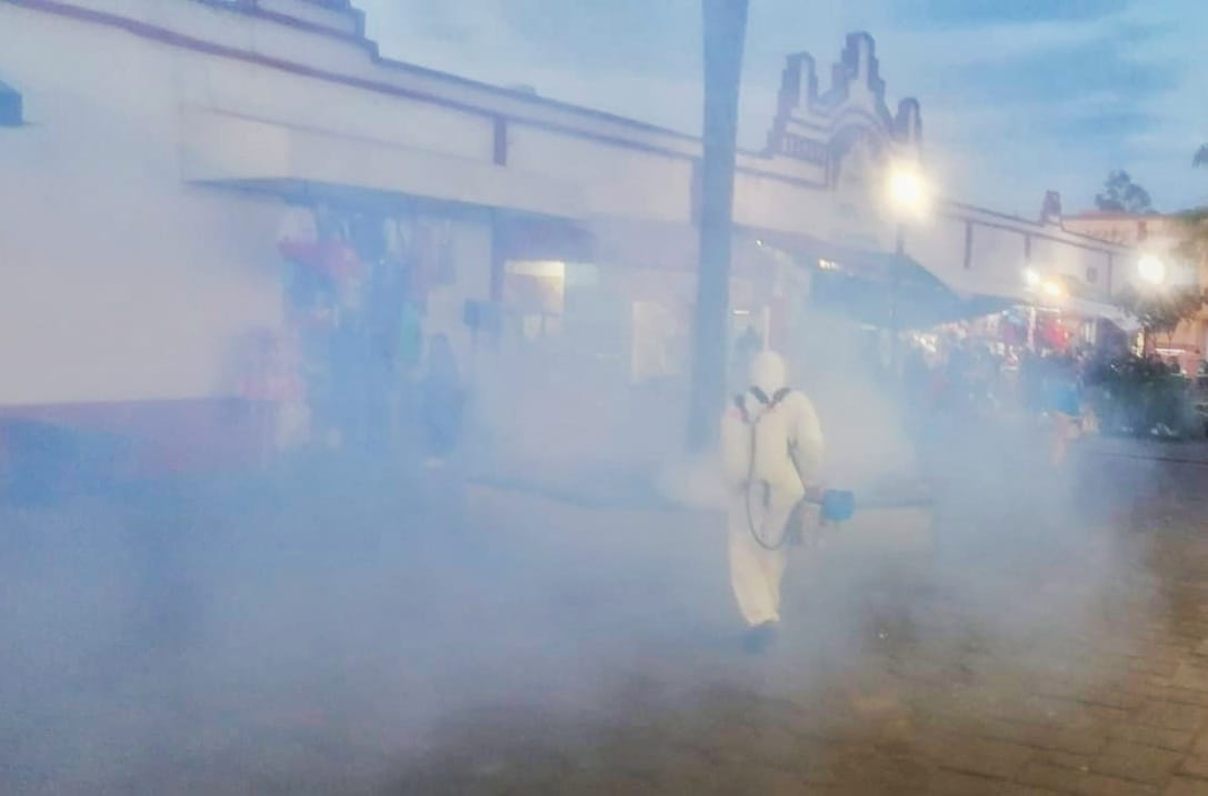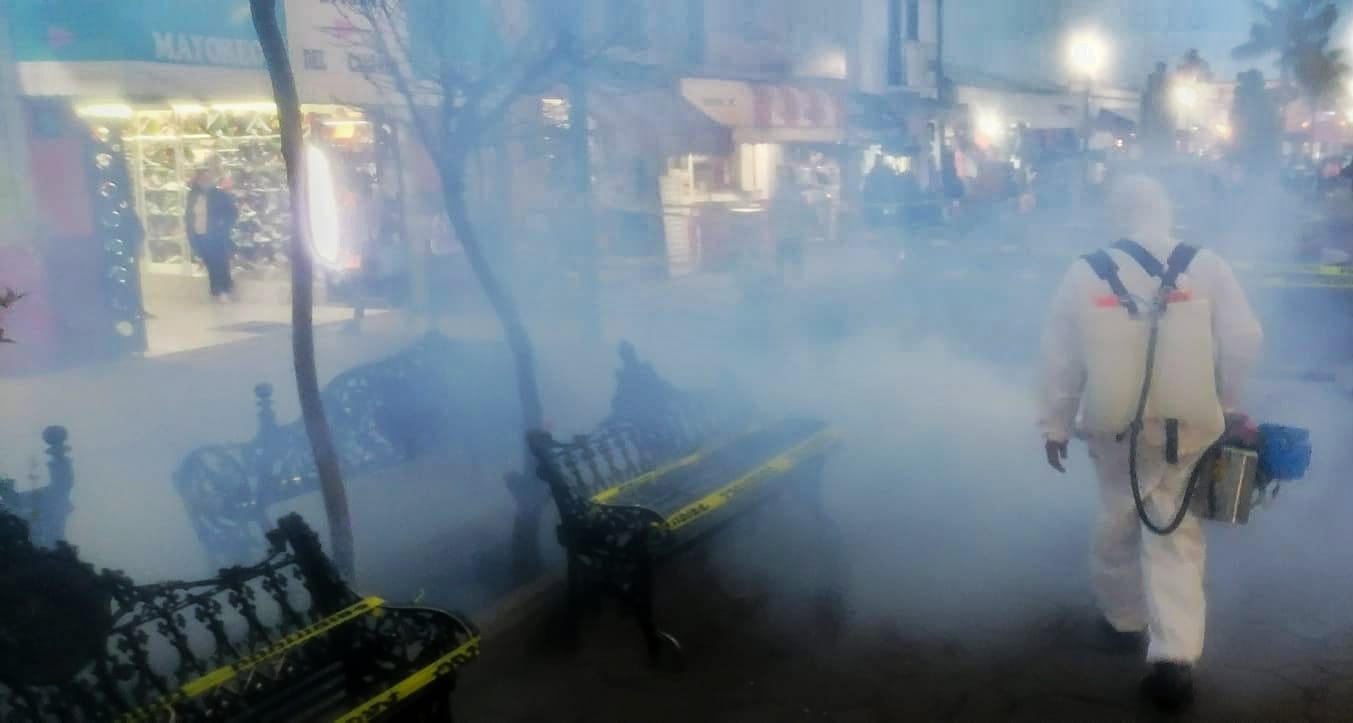 Con la instrucción del presidente municipal de sanitizar los espacios comunes de la ciudad, la noche del 15 de enero, personal del área de Protección Civil municipal desplegó un operativo en la zona y con el apoyo de los comerciantes se agilizó el cumplimiento de estas acciones.