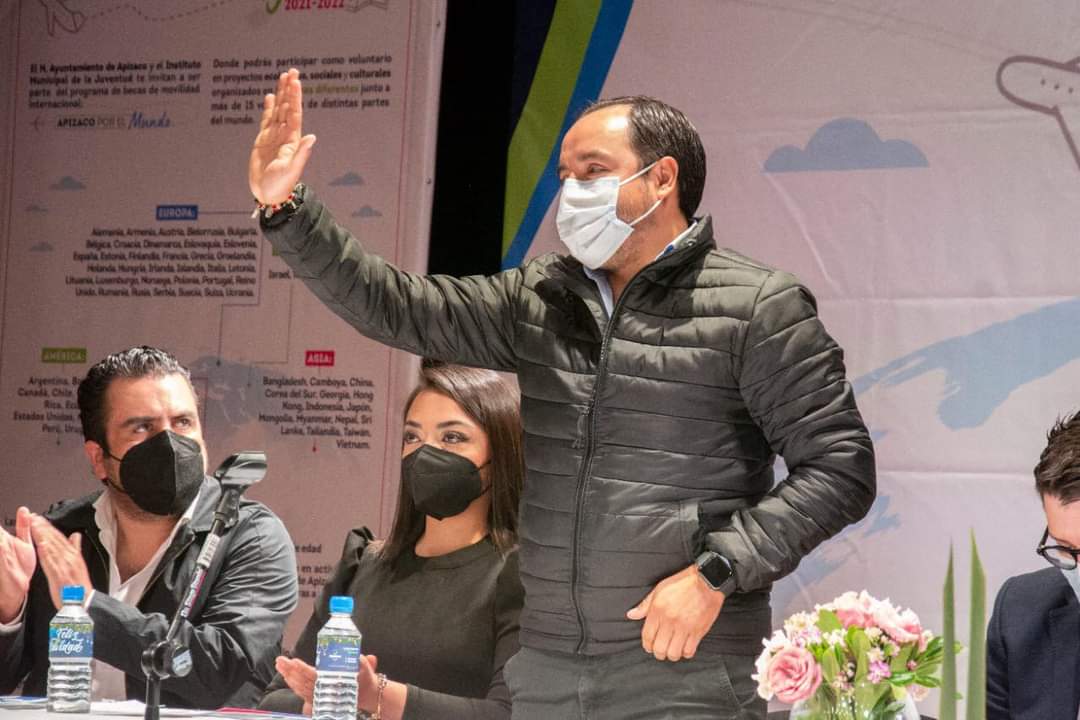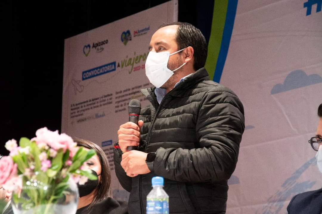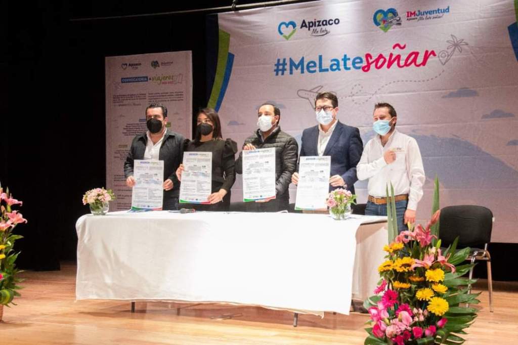 El Presidente Municipal de Apizaco Pablo Badillo, acompañado del Secretario de Cultura, Antonio Martínez Velázquez, la directora del IMJuventud Apizaco, Angélica Gutiérrez y el Director del ITJ, Edgar Martínez Bermúdez, presentaron la convocatoria municipal de becas de movilidad internacional “Apizaco por el Mundo 2022” que colocará a más de 500 jóvenes Apizaquenses y Tlaxcaltecas en más de 80 países