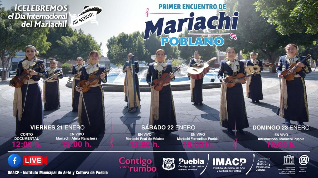En reconocimiento a la trayectoria de los músicos del género regional mexicano, el Ayuntamiento de Puebla, a través del Instituto Municipal de Arte y Cultura (IMACP) realizará el “Primer encuentro de Mariachi Poblano”, para festejar con motivo de su día internacional y difundir esta tradición acústica y vocal al público poblano, mexicano y extranjero.