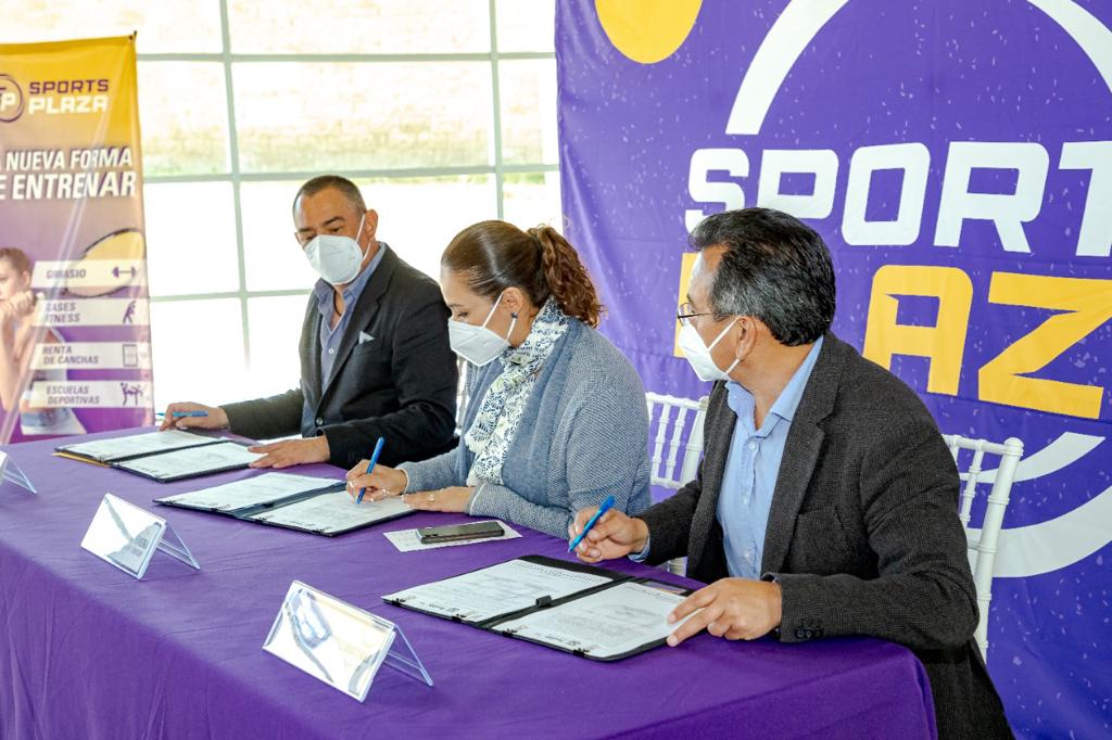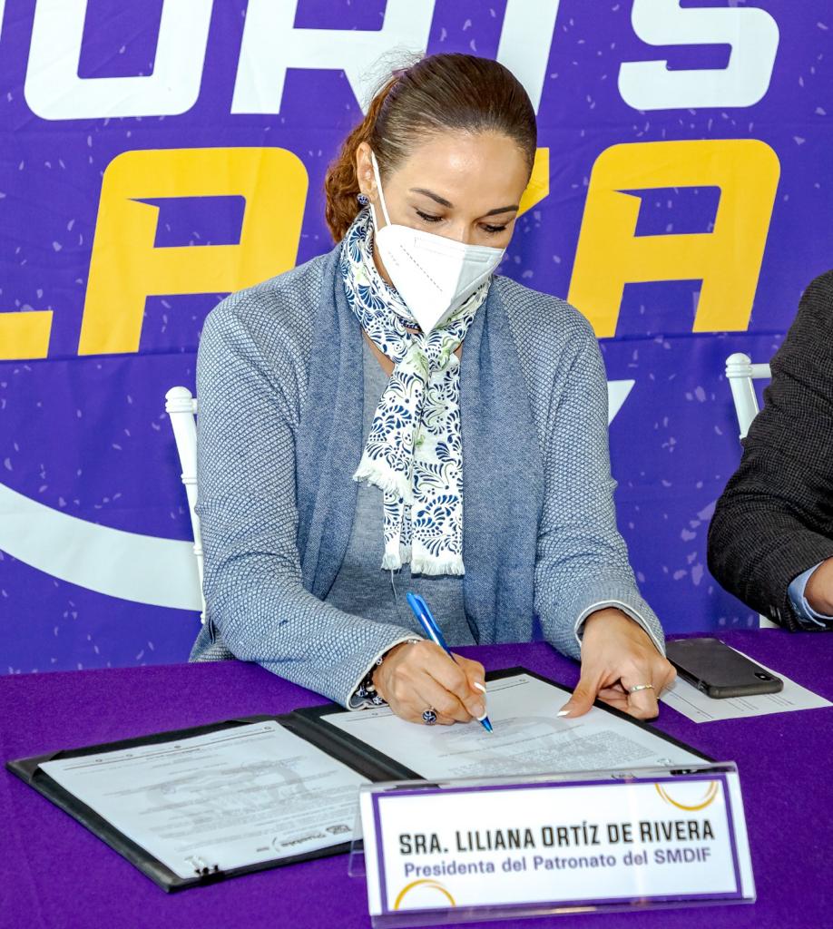 Para que personas adultas mayores realicen actividades deportivas, recreativas y de capacitación de manera gratuita, Liliana Ortiz Pérez, Presidenta Honoraria del Sistema Municipal DIF (SMDIF) y Francisco Ramírez Martínez, Director General, firmaron un convenio de colaboración con la Fundación Club Alpha de Puebla, representada por Sergio Barrera Peña, Director General, permitiéndoles hacer uso de las instalaciones de Sports Plaza.