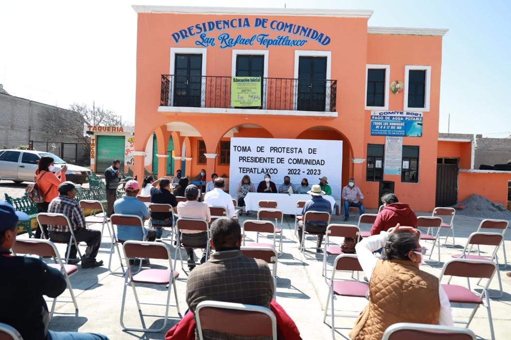 En la presidencia de comunidad de San Rafael Tepatlaxco del municipio de Chiautempan se llevó a cabo la toma de protesta del presidente de dicha comunidad, Samuel Palacios Copalcua.