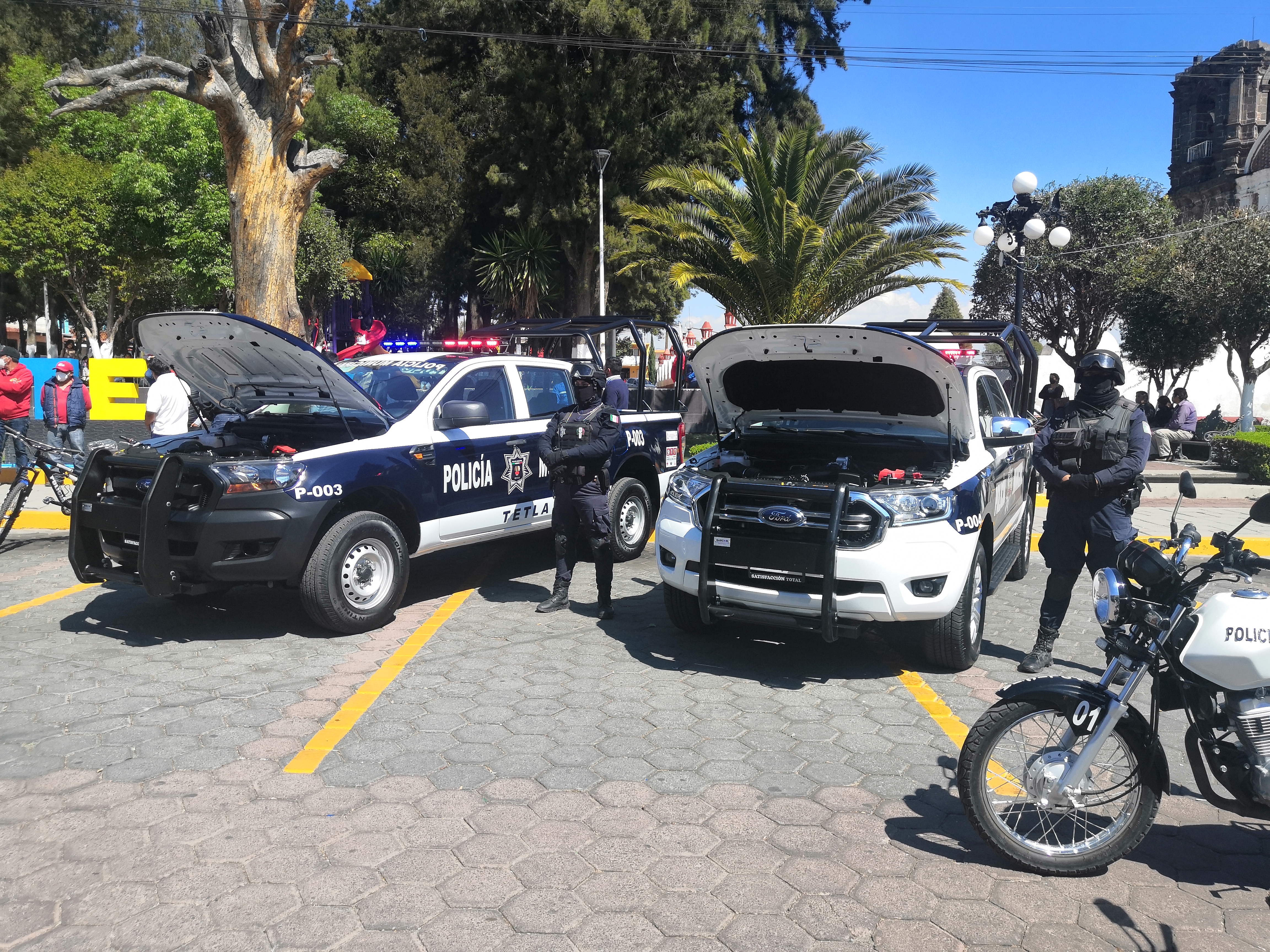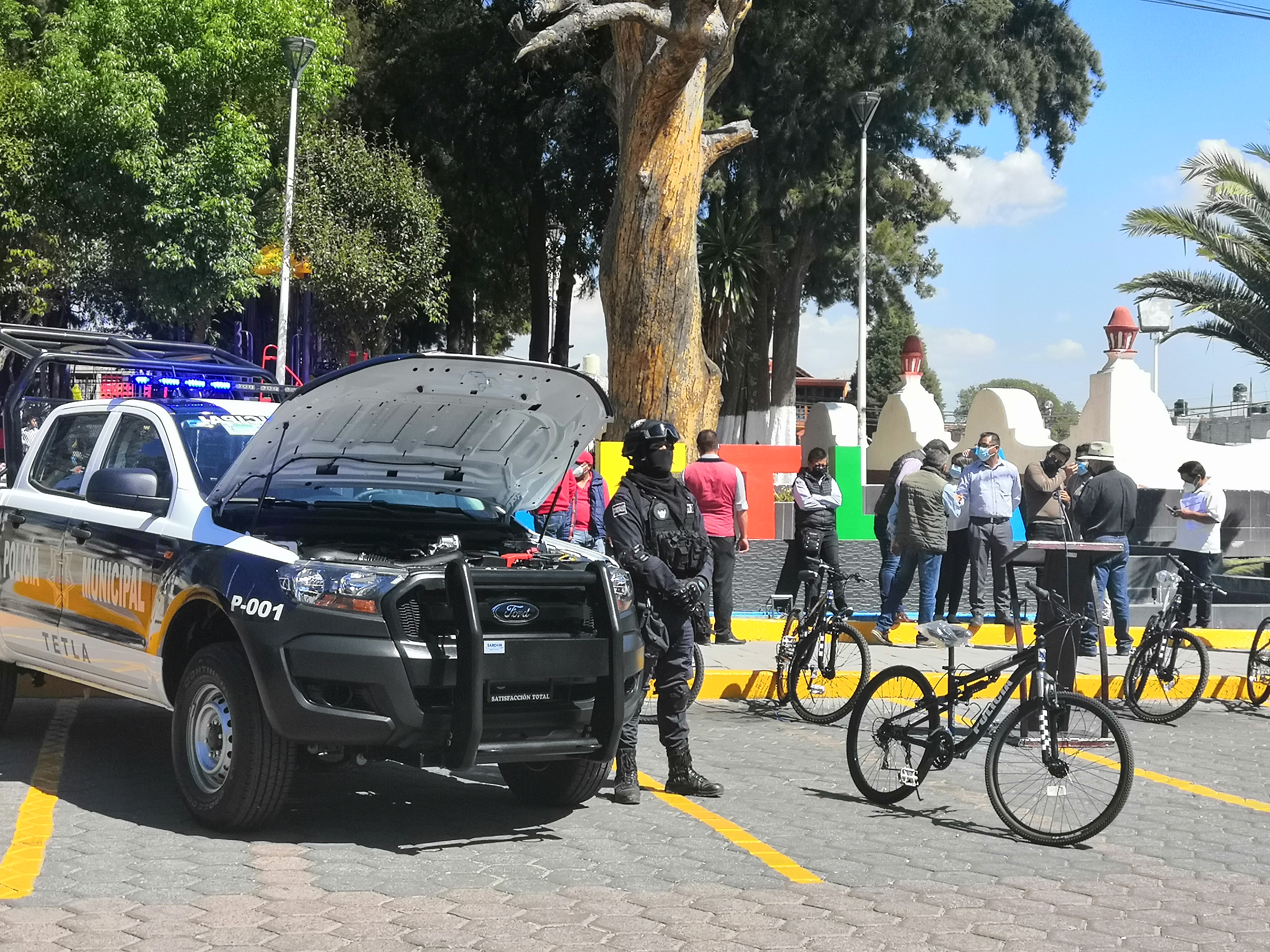 El dia de hoy el alcalde de Tetla Andres Ramírez Galicia entrego cuatro patrullas, motocicletas y bicicletas al cuerpo policiaco de este municipio.