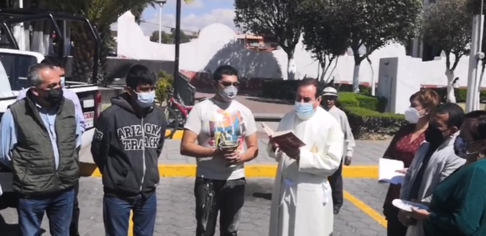 Es así como el parroco de este lugar hizo el acto liturgico de bendicion de las unidades.