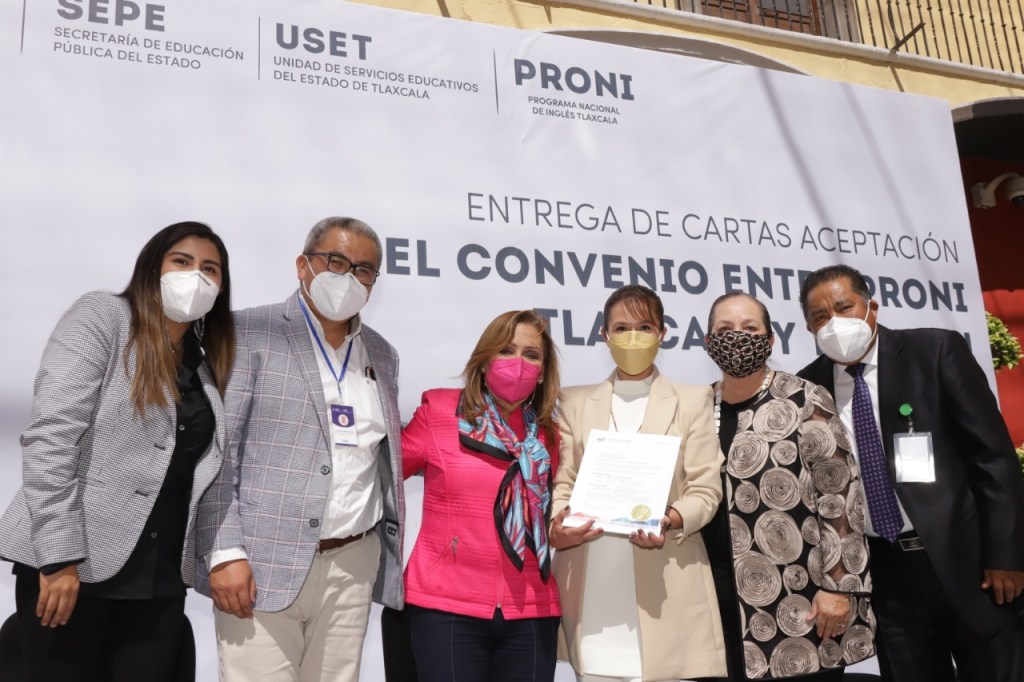 El Gobierno Estatal, a través de la Secretaría de Educación Pública del Estado y la Unidad de Servicios Educativos de Tlaxcala (SEPE-USET), entregó 40 cartas aceptación del convenio entre el Programa Nacional de Inglés (Proni) Tlaxcala y Texas, Estados Unidos, con el objetivo de que los docentes de escuelas públicas y privadas se profesionalicen en el manejo de un segundo idioma y, a su vez, mejoren la calidad educativa en la entidad.