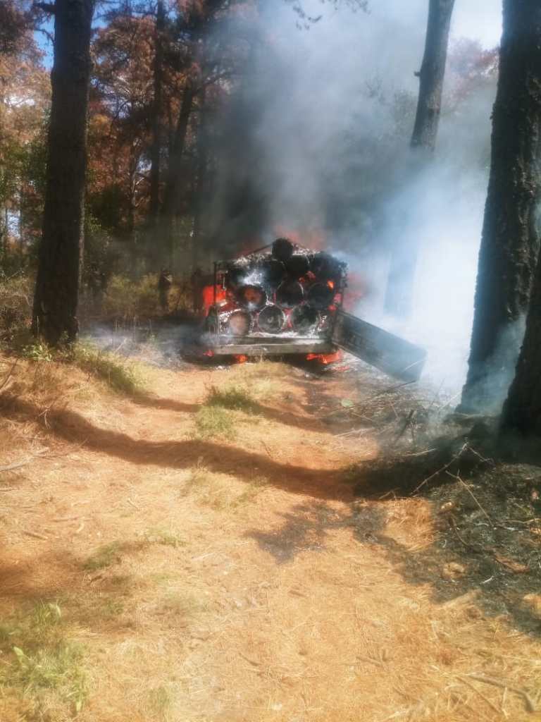 Al estar ante el inicio de un siniestro, elementos de la Policía de Montaña procedieron a la sofocación de las llamas; es así como evitaron la propagación del fuego en la zona y evitaron daños al medio ambiente, para posteriormente asegurar la unidad cargada con material forestal.