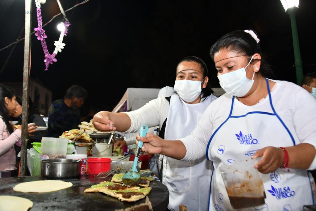 El segundo viernes de muéganos se realizó en el barrio de El Calvario, donde cientos de familias disfrutaron de los tradicionales muéganos huamantlecos, así como de una variedad de antojitos que se colocaron en los alrededores del templo.