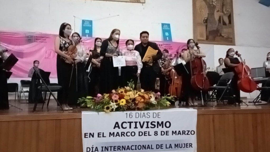 En el marco de los 16 Días de Activismo por la 46 conmemoración del Día Internacional de la Mujer, la Camerata Femenil “Matlalcuéyetl”, dirigida por Rosa María Vázquez López, ofreció un concierto en el municipio de Ixtenco, con el tema “Empoderamiento de las Mujeres a Través de la Expresión Musical”.