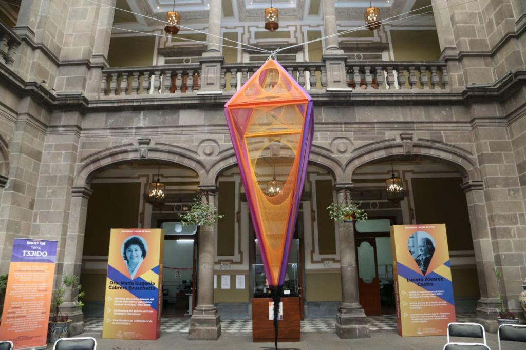 Además de la Exposición Mujer de Tinta, el Patio del Palacio Municipal también albergará la instalación artística T3JIDO, donde cada uno de sus elementos: papel, tinta, red de hilo y pluma, proyectan la comunicación, que a través de la escritura, se perpetúa en la memoria.