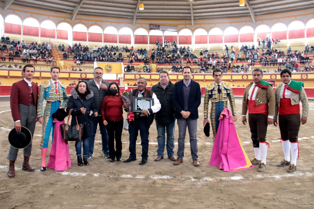 Al terminar el paseíllo la empresa entregó un reconocimiento al fotógrafo taurino teziuteco Marcelino Martínez, por su trayectoria.