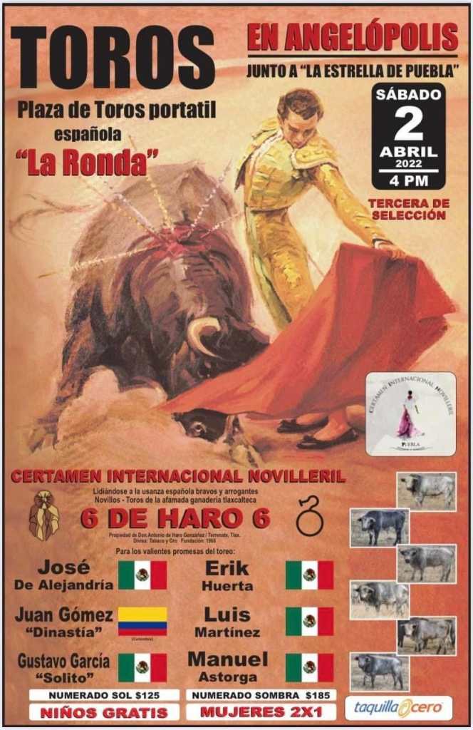El empresario Mario García Rojas, Director del Certamen Internacional Novilleril envió el día de hoy un comunicado en el que amplía su postura respecto a las dos primeras fechas y la decisión de reestructurar todo el programa del certamen, además de anunciar la próxima novillada el 2 de Abril con ejemplares de De Haro y 6 Novilleros en interesante cartel, se llevará a cabo en el mismo lugar y con los mismos precios, la compra de boletos será a través de Taquillacero.