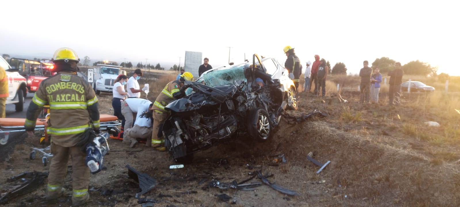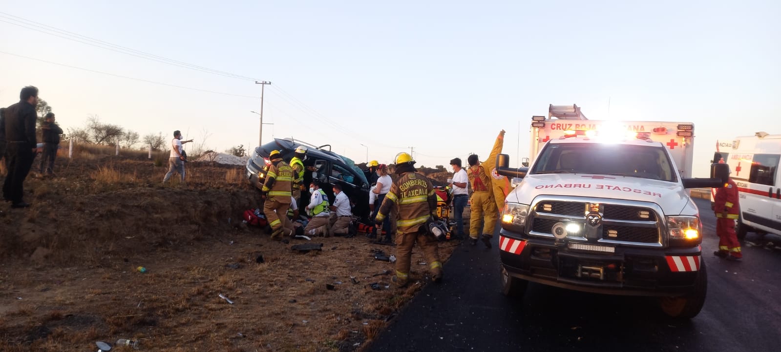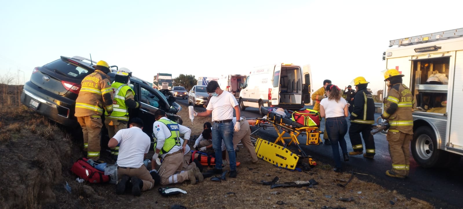 Personal del Heroico Cuerpo de Bomberos se encargó de auxiliar a los conductores de los vehículos, una camioneta marca JAC con placas del estado de Hidalgo y un vehículo marca Toyota Yaris con placas del estado de Tlaxcala, utilizando el equipo libra (tijeras de la vida) para poder liberar a los ocupantes de los vehículos en mención y ser canalizados al hospital más cercano para su atención médica.