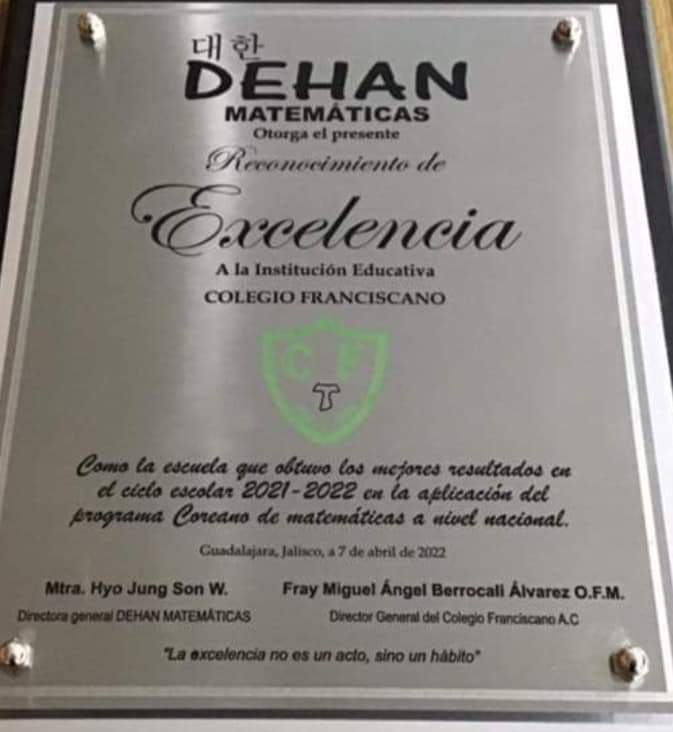 Este dia alumnos destacados del bachillerato de Colegio Franciscano recibieron reconocimiento por parte de la escuela Dehan Matematicas, quienes han mostrado un alto nivel en esta asignatura.