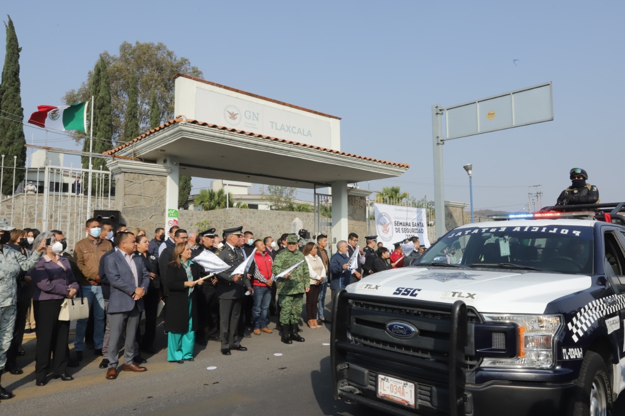 La gobernadora de Tlaxcala encabezó el banderazo del Operativo Interinstitucional «Semana Santa de Seguridad 2022» que se implementará del 8 al 24 de abril, con la finalidad de proporcionar seguridad, información y apoyo a la población en áreas de mayor afluencia y lugares de riesgo, así como en las diferentes vías de comunicación del estado.
