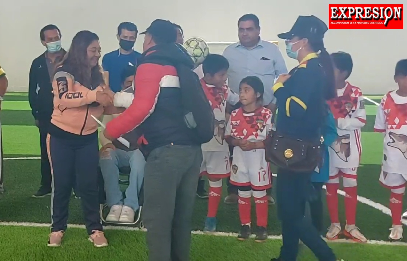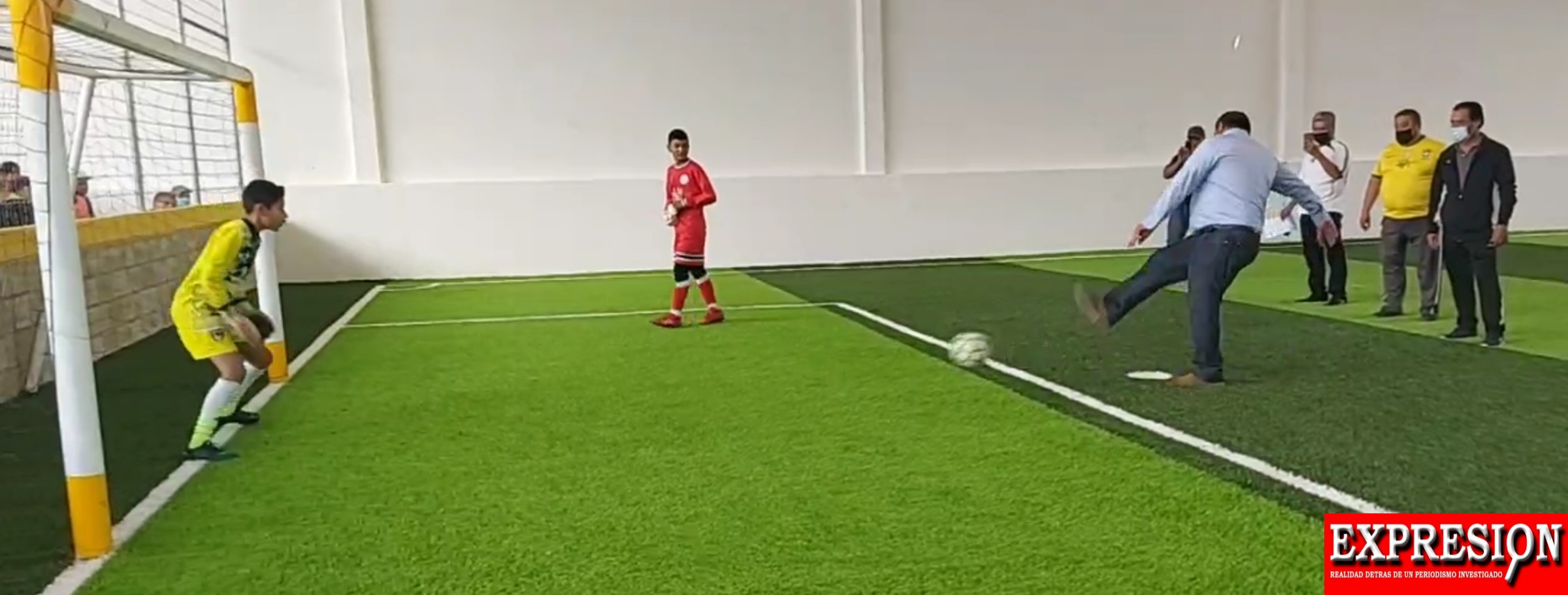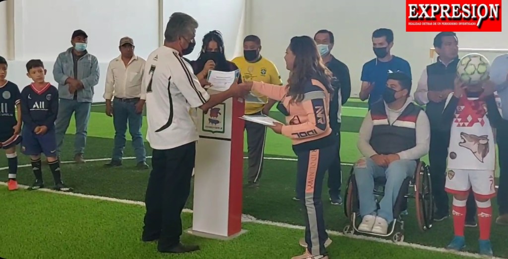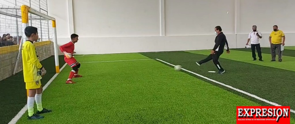 Posteriormente las autoridades encabezadas por la presidenta dieron la patada inicial o penaltie para estrenar esta cancha, para demostrar que el deporte está al alcance de todos.