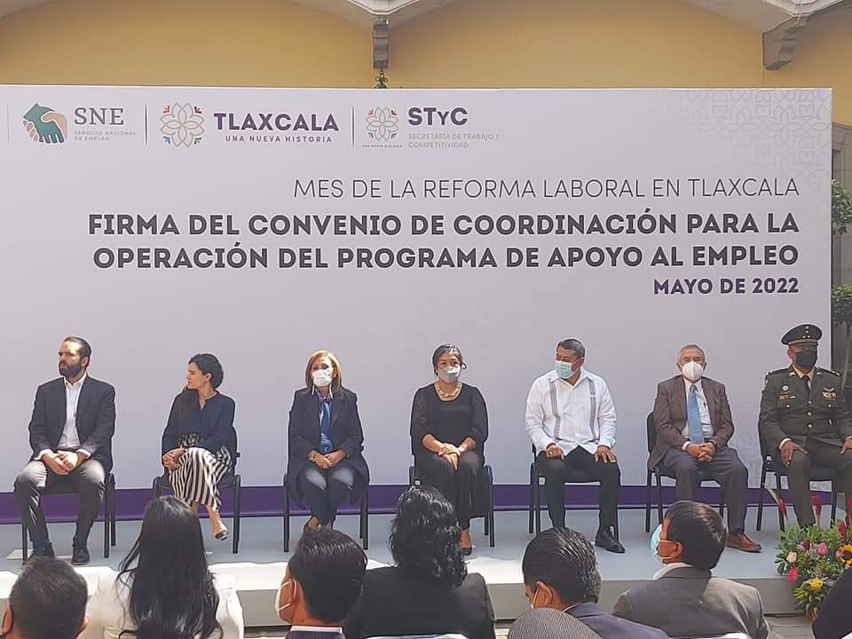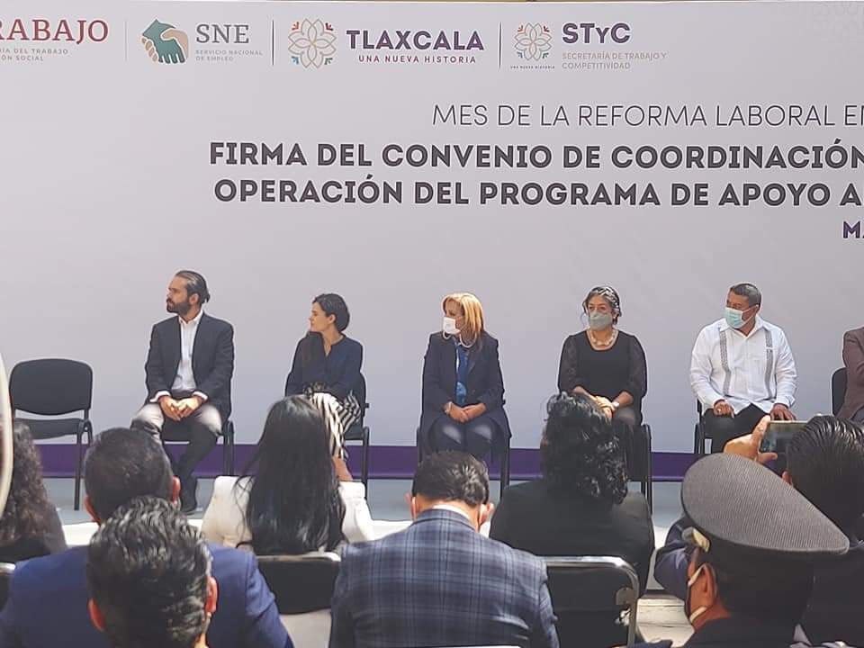 El dia de hoy se efectuo la Firma de convenio para la operación del programa de apoyo al empleo entre la Secretaría de trabajo y previsión social del gobierno federal y el gobierno del estado de Tlaxcala encabezado por Lorena Cuellar Cisneros.