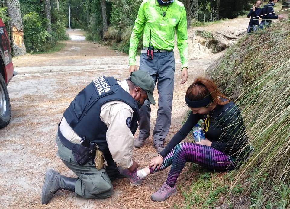 La mujer mencionó que sufrió caída de su propia altura, provocándole un fuerte dolor en el tobillo del pie derecho, por lo que personal de montaña le solicitó su consentimiento para realizarle una auscultación, observado que tiene al parecer un esguince de segundo grado.
