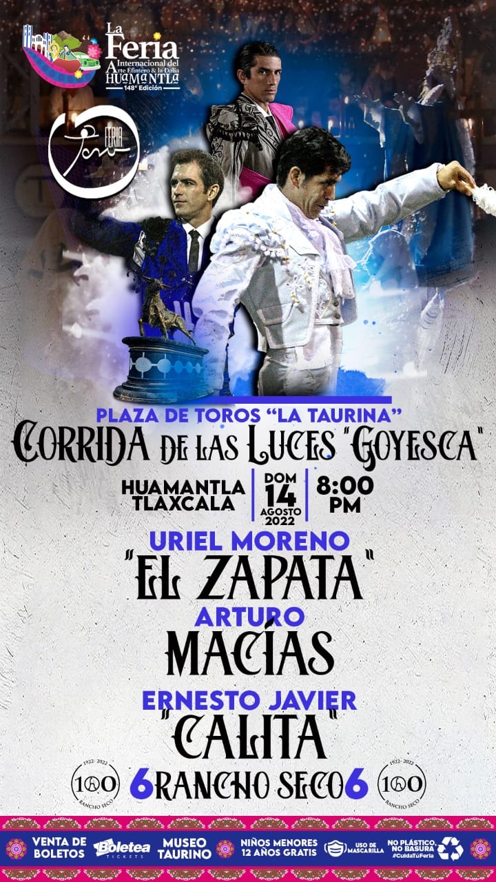 En el cartel figuran Uriel Moreno «El Zapata», Arturo Macías y Ernesto Javier «Calita», el festejo dará inicio a las 8:00 pm esté domingo 14 de agosto.