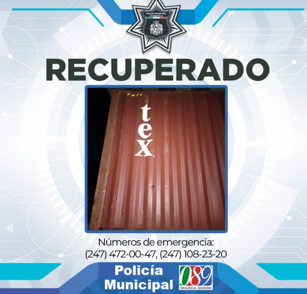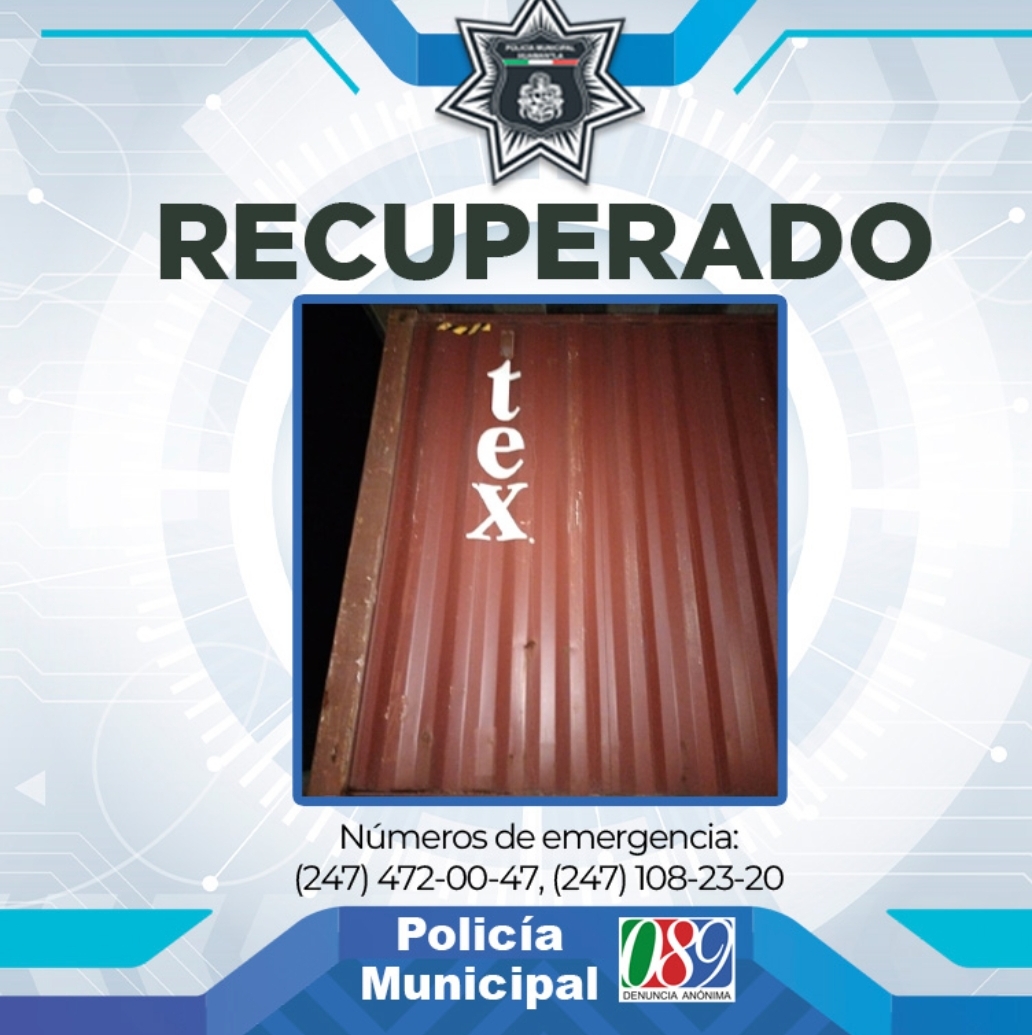 Los uniformados solicitaron en la Comisaría se consultara en el Repuve el número de serie para conocer el estatus del Contenedor, el cual confirmaron minutos después sí tenía reporte de robo.
