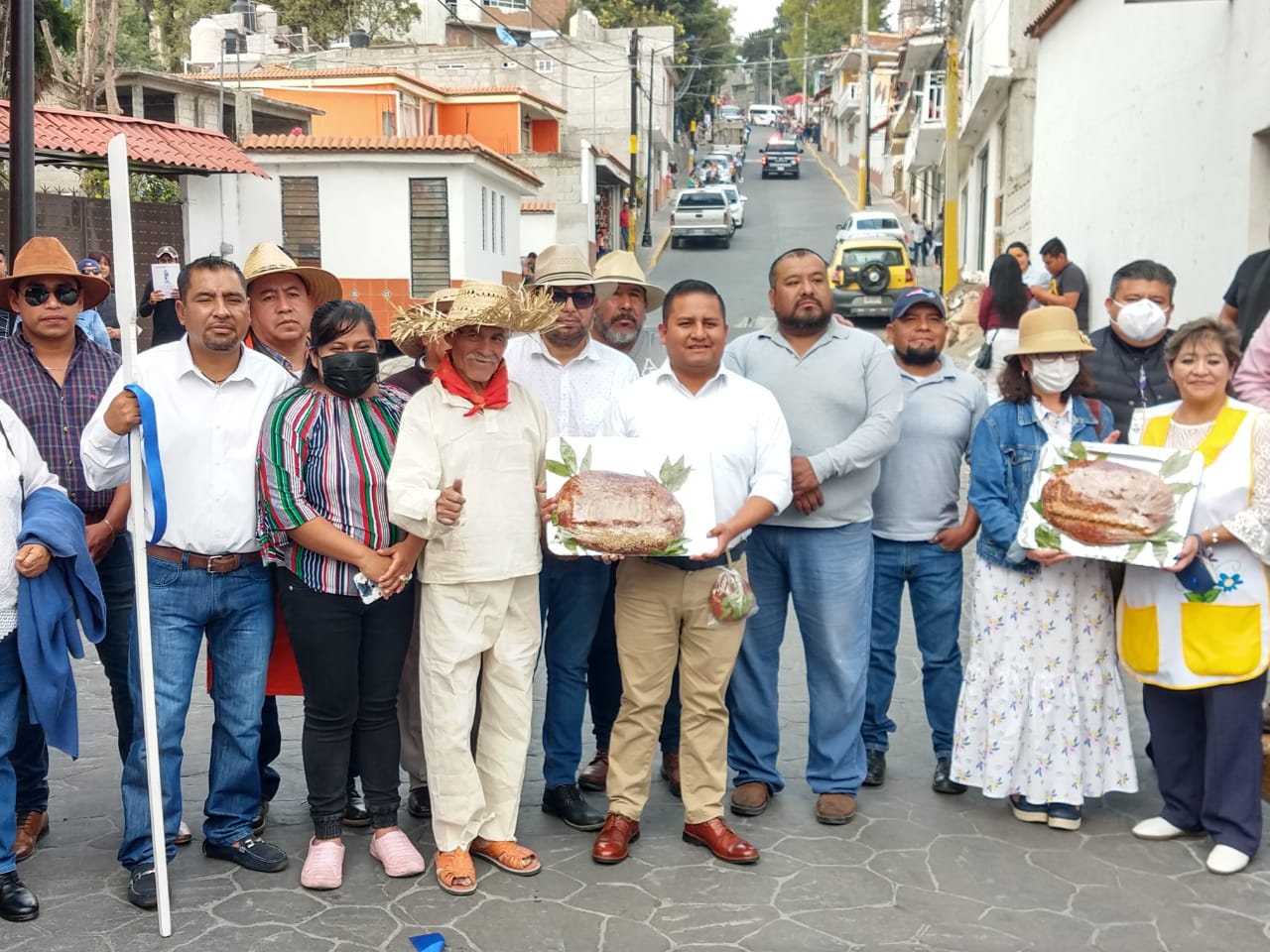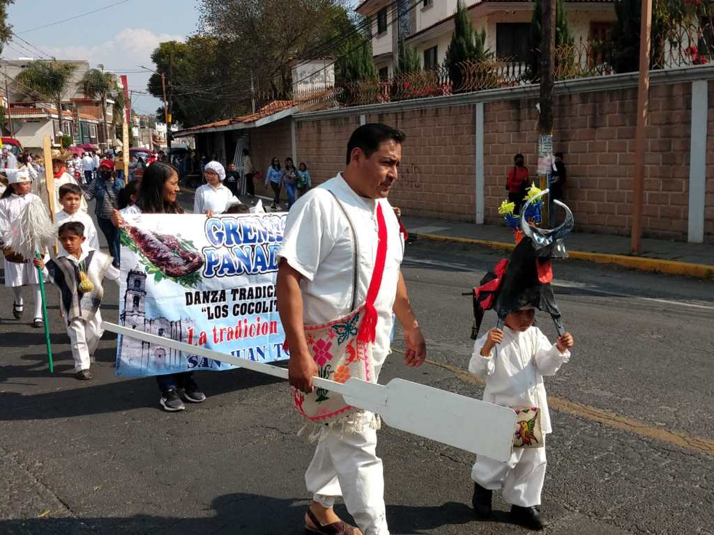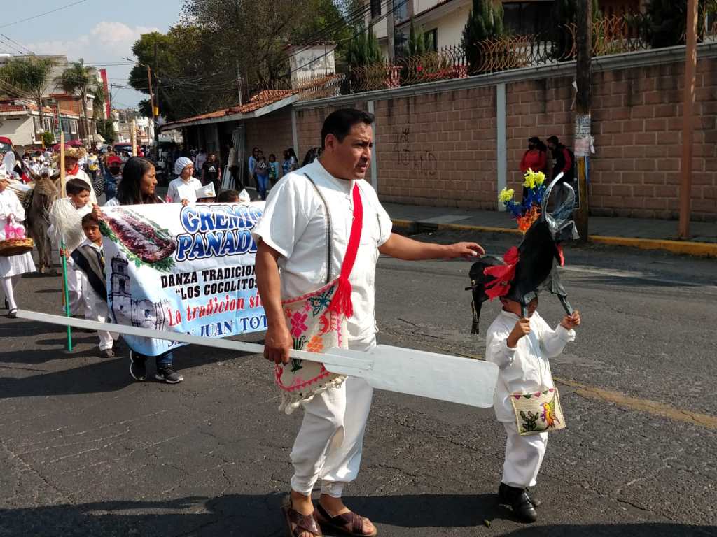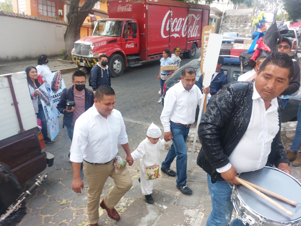 Mismo que lo integraron miembros de la fiscalia 2023, tahoneros quienes regalaron el tradicional pan de fiesta al publico, danzantes de moros y cristianos, danza de los panaderitos, y escuelas de este municipio.