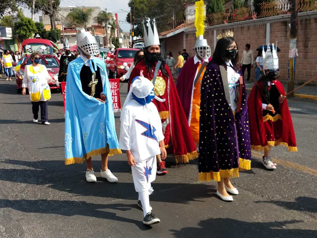 Contingentes llenos de tradicion integraron el Desfile de inauguracion de la Feria Patronal a San Juan Bautista en el municipio de Totolac, Tlaxcala.
