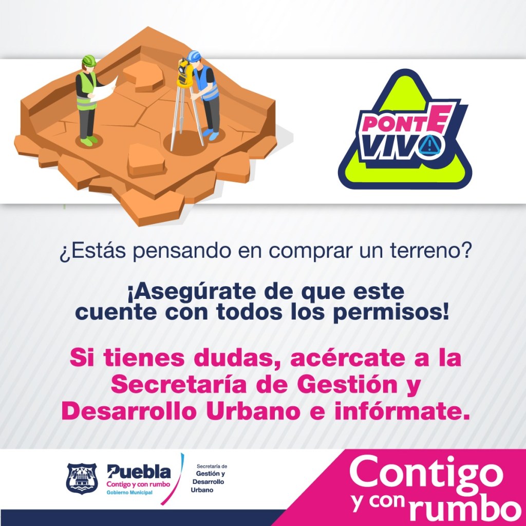 El Ayuntamiento de Puebla, a través de la Secretaría de Gestión y Desarrollo Urbano (SGyDU) invita a las y los poblanos que quieran adquirir un terreno a hacerlo de forma segura sin poner en riesgo su patrimonio.