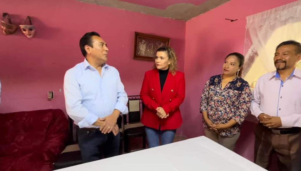 En casa de la familia Carrillo de Acuitlapilco, el presidente municipal de Tlaxcala, Jorge Corichi, entregó apoyos económicos a representantes de camadas de huehues quienes se alistan para la realización de su carnaval en la comunidad.