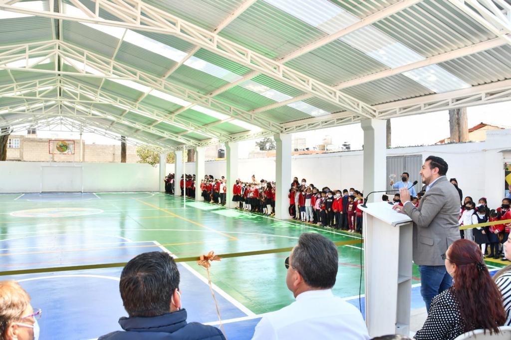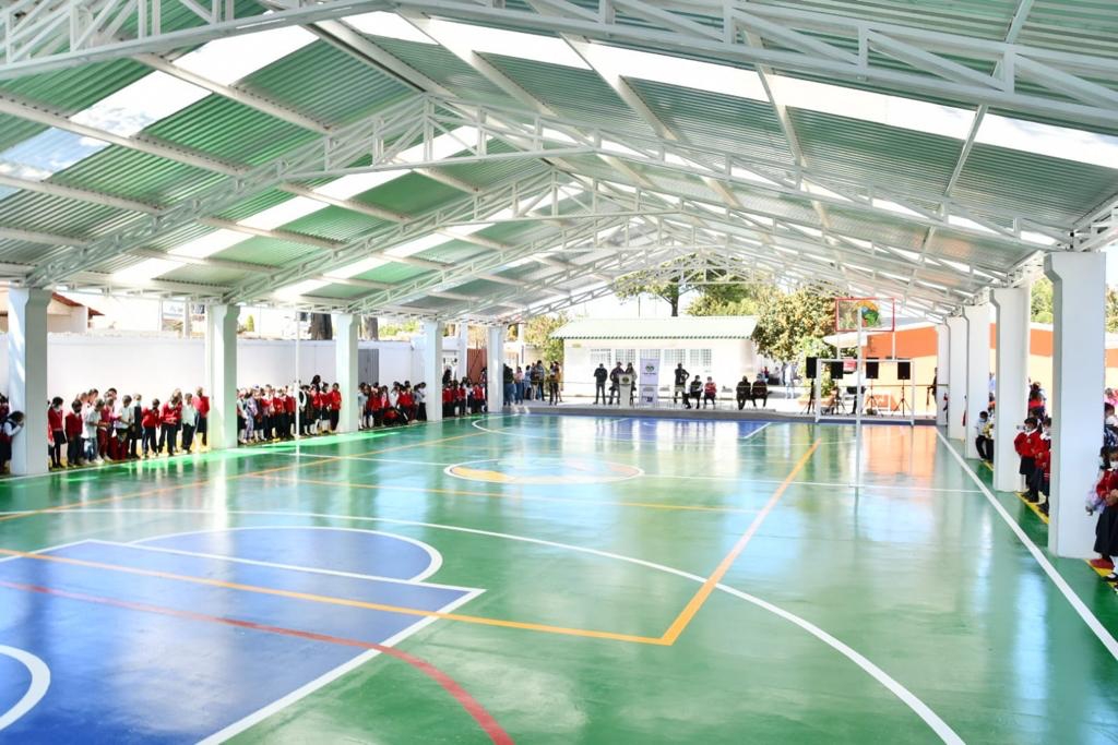 De igual manera, se han construido techumbres y canchas deportivas en escuelas de varias comunidades, para proteger de los rayos del sol a los estudiantes cuando realicen actividades cívicas o deportivas, y cuenten con un mejor espacio para el esparcimiento y la instrucción.