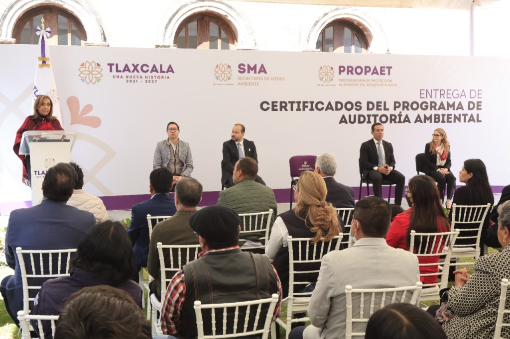 La titular del Ejecutivo local, Lorena Cuéllar Cisneros entregó a entes del ámbito público y privado, 17 certificados del programa de Auditoría Ambiental que lleva a cabo la Procuraduría de Protección al Ambiente del Estado de Tlaxcala (Propaet),