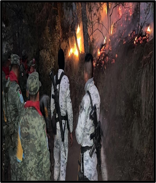 La Sedena y GN, intervinieron desde el primer momento en apoyo para controlar el incendio, para posteriormente trabajar de manera conjunta con las autoridades municipales y estatales.