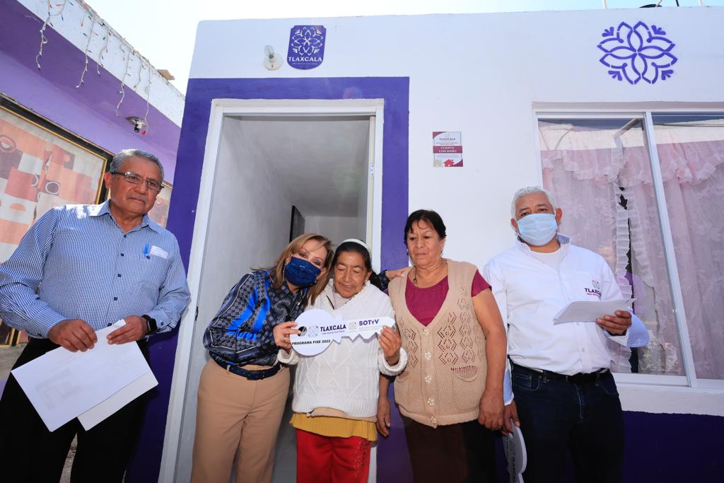 La gobernadora Lorena Cuéllar Cisneros entregó acciones del «Programa Construyendo Viviendas Adecuadas 2022», en las modalidades cuarto dormitorio y cuarto con baño, a familias del municipio de Natívitas, con lo que se busca reducir los índices de hacinamiento y otorgar un espacio adecuado para las personas que padecen enfermedades renales.