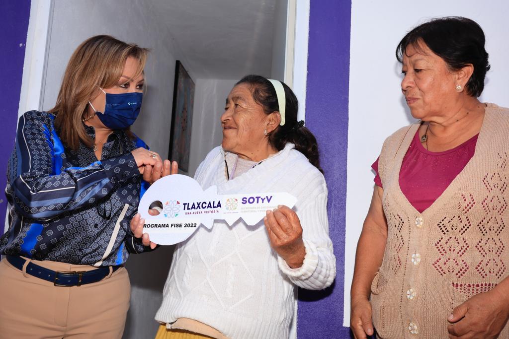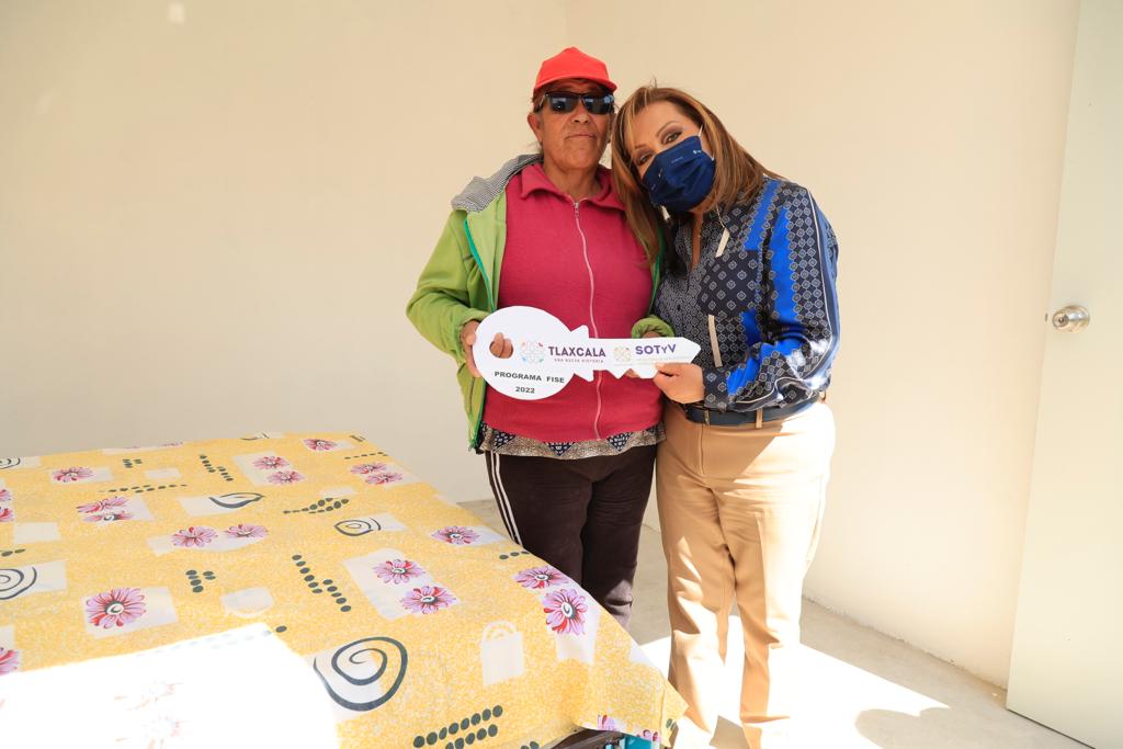 Al entregar las llaves de los inmuebles a Isabel Fidencia Arias Baleón, Susana Aguilar Pérez y Teresa Hernández Espino de las comunidades de Tepactepec y Michac, la mandataria estatal reiteró su compromiso de mejorar la calidad de vida de las familias tlaxcaltecas que viven en condiciones de vulnerabilidad