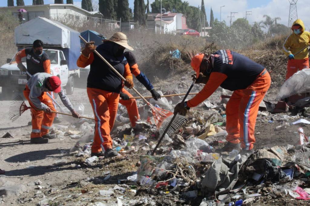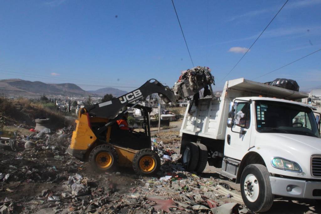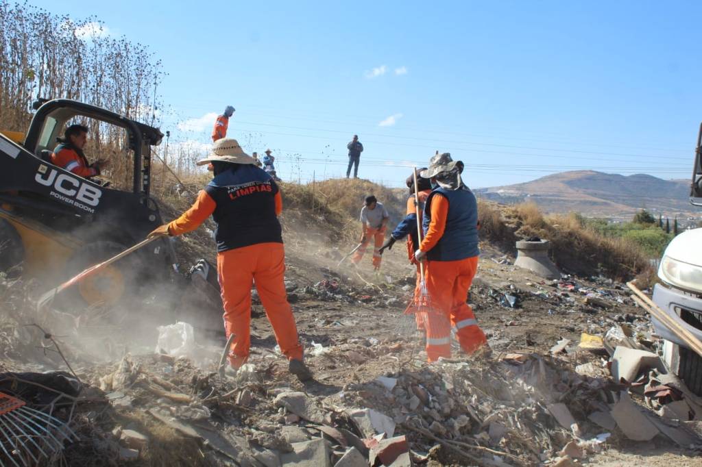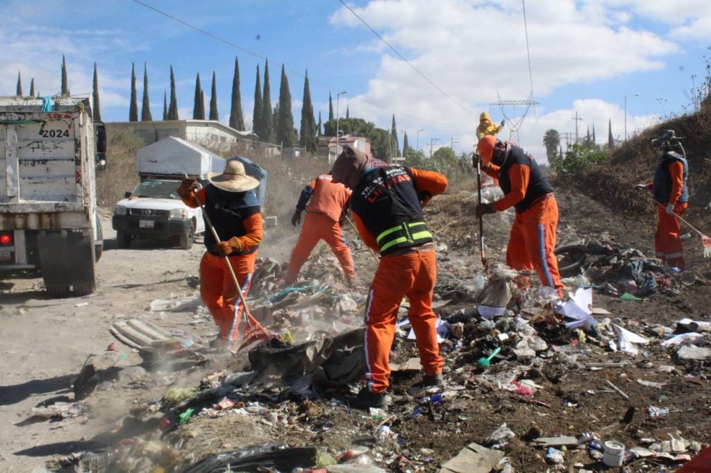 Con 24 personas de barrido manual, dos camiones de volteo, un camión tipo cuna, cuatro camionetas, un minicargador y una pipa de agua, se laboró en el predio.