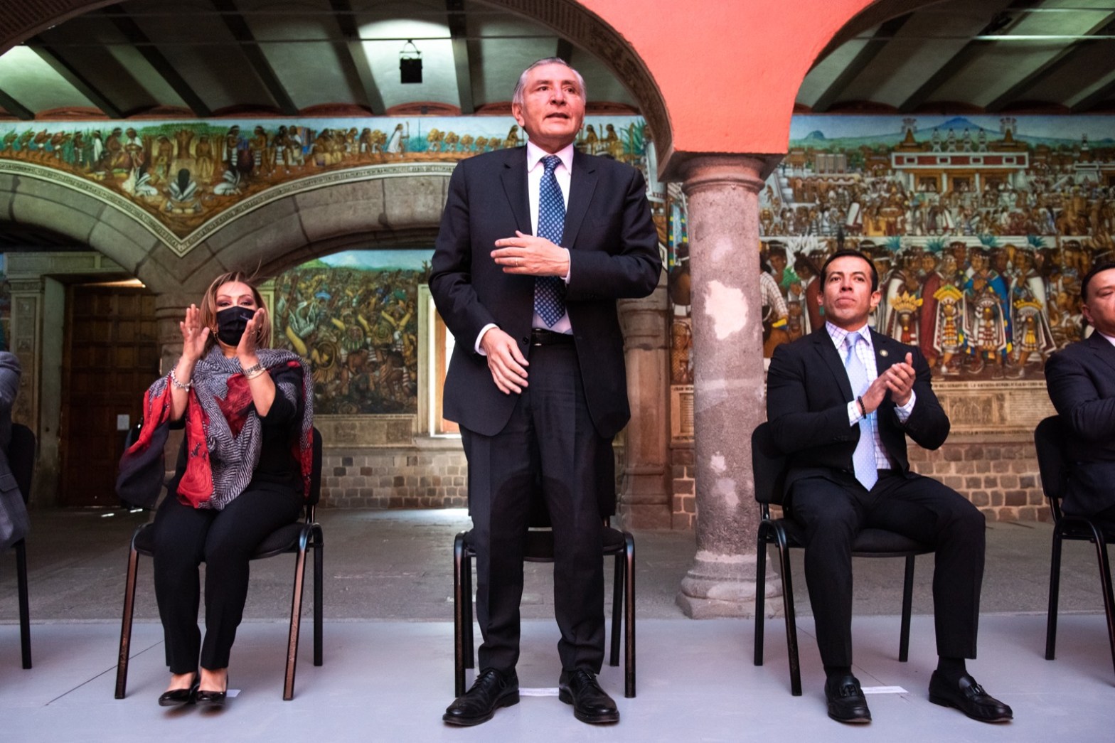 El Patio Central del Palacio de Gobierno fue sede del encuentro denominado “La corresponsabilidad de la Federación, Estados y Municipios en la Construcción de la Paz”, donde el encargado de la política interna del país reconoció a la mandataria estatal como una mujer honesta, íntegra, capaz y profesional, que en poco tiempo logró generar grandes avances en distintos rubros
