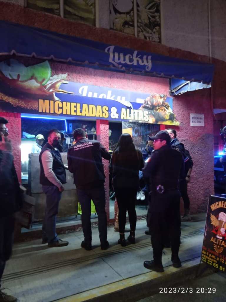 Los cierres se realizaron en: “Bar Roma”, en Villas San Alejandro; “Innominado” en Plaza GM6, Agua Santa; “El Contenedor”, en Granjas Puebla y/o El Cobre; micheladas & alitas “Lucky”, en Solidaridad; “Mi Chelita” y miscelánea con venta de Cerveza en Botella Cerrada “El Abuelo”, ambas ubicadas en Santa Lucía; “La Tóxica”, en U.H Real de Guadalupe; al igual que “Islas 2”, en Constitución Mexicana; durante esta inspección “Las Adelitas”, en Clotilde Torres y el restaurante bar “Cielito Lindo”, en Rancho San José Aparicio, presentaron su documentación en orden.