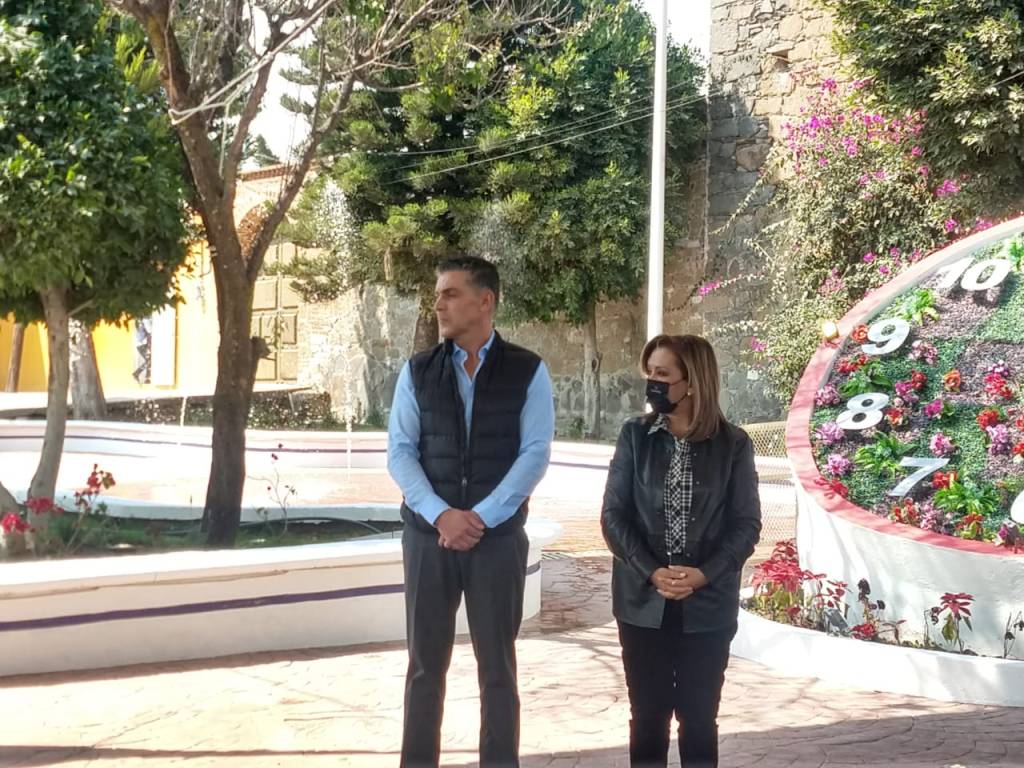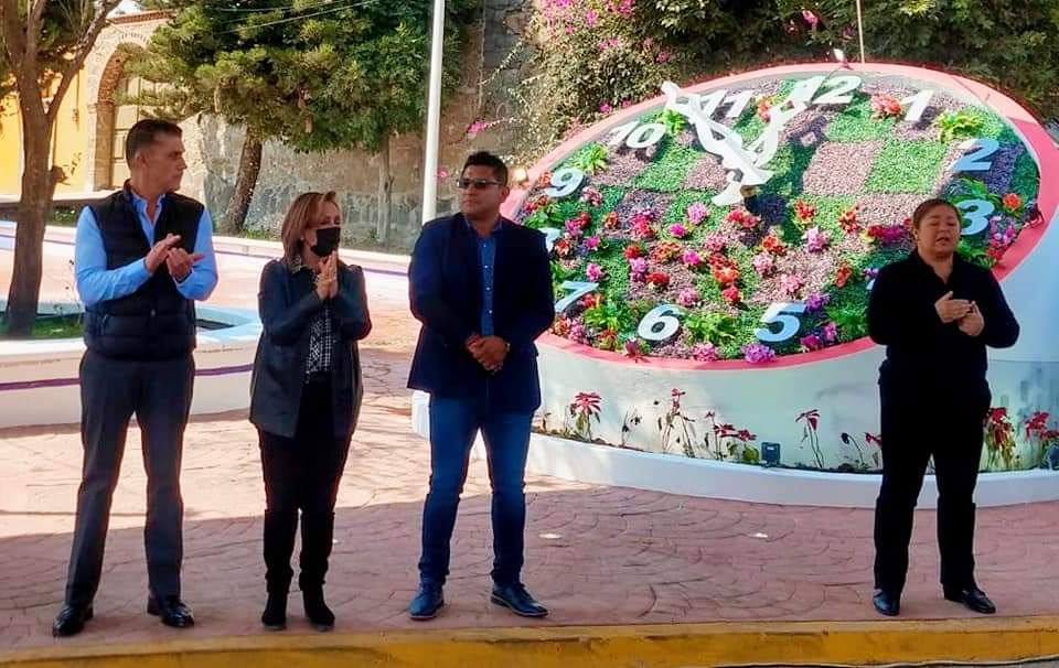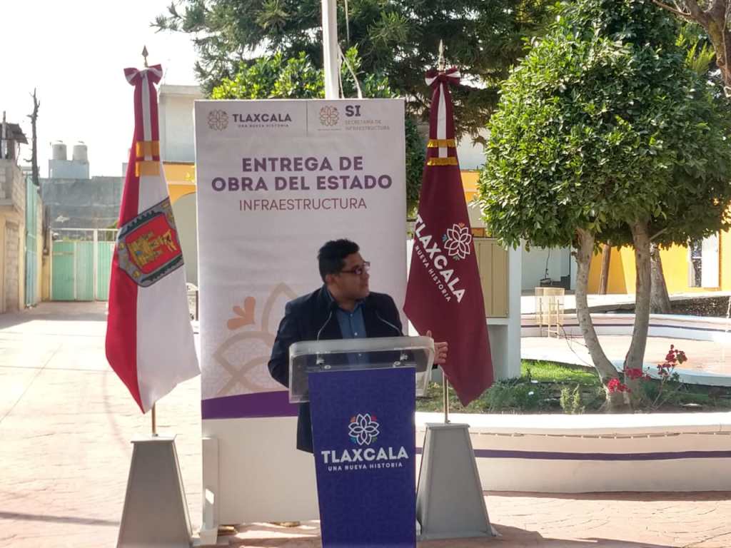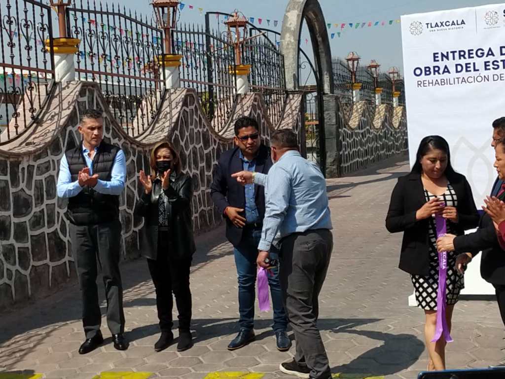Inaugura la Gobernadora de Tlaxcala Lorena Cuéllar Cisneros, alcalde de Santa Anita Nopalucan Pedro Perez Vazquez y el Secretario de Infraestructura (SI) Alfonso Sánchez García magnifica obra rehabilitacion del parque central y calle Loma Bonita.