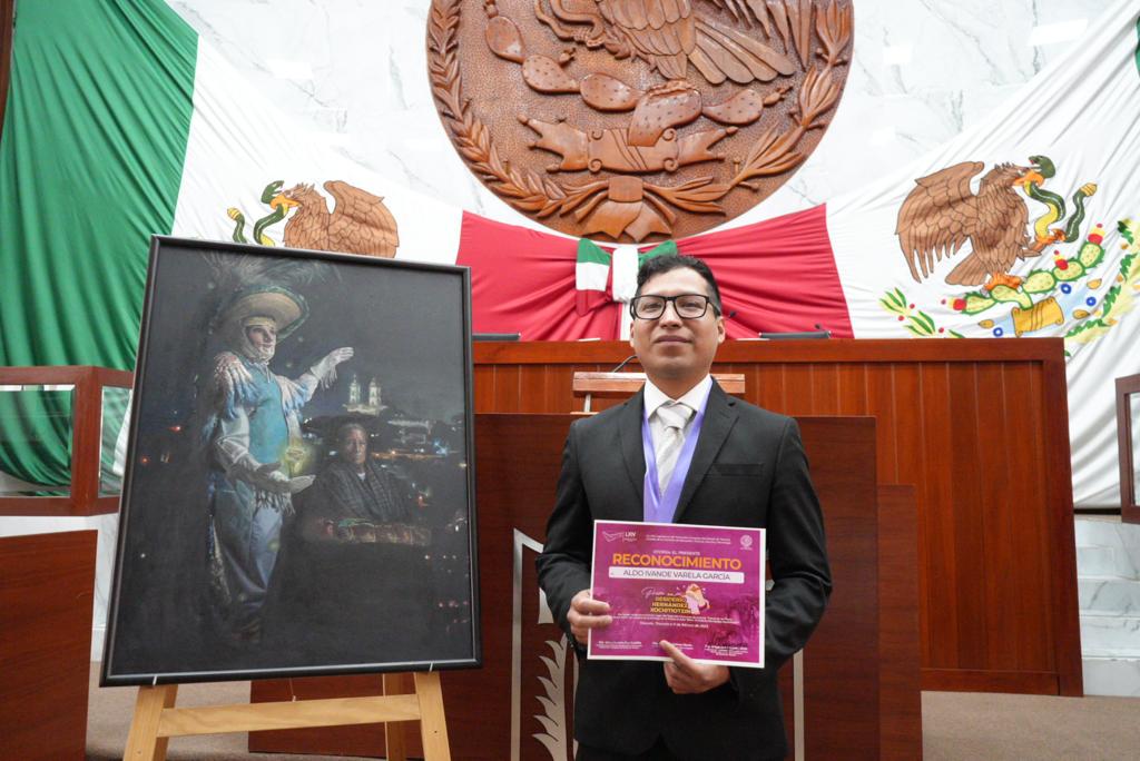 Las y los diputados integrantes de la LXIV Legislatura del Congreso del Estado de Tlaxcala en Sesión Extraordinaria Pública y Solemne, entregaron la presea al arte “Maestro Desiderio Hernández Xochitiotzin” 2023 al pintor Aldo Ivanoe Varela García con su obra “Luz y Magia Tlaxcallan”.