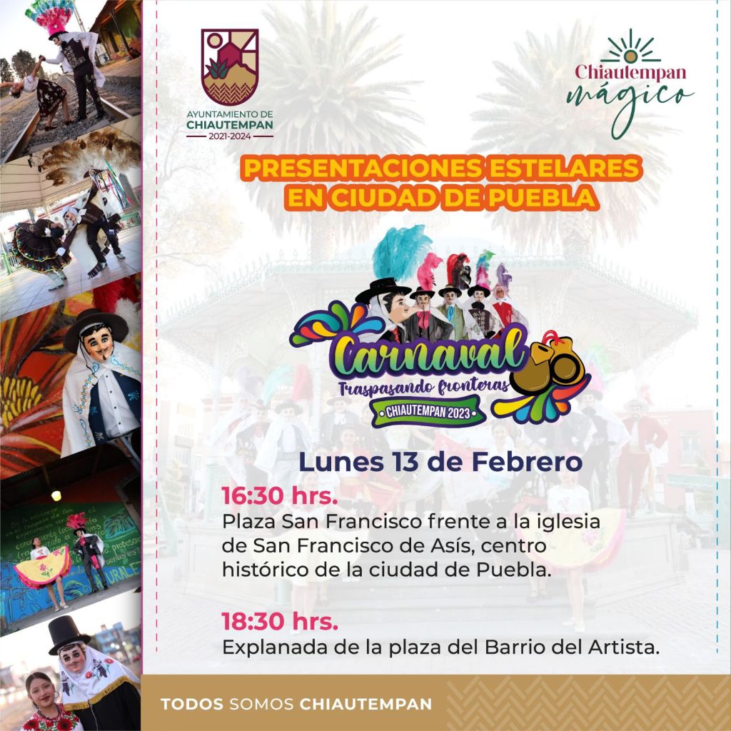 Este lunes 13 de febrero, toda la alegría, tradición y cultura del Carnaval de Chiautempan se podrá admirar en el estado vecino de Puebla.