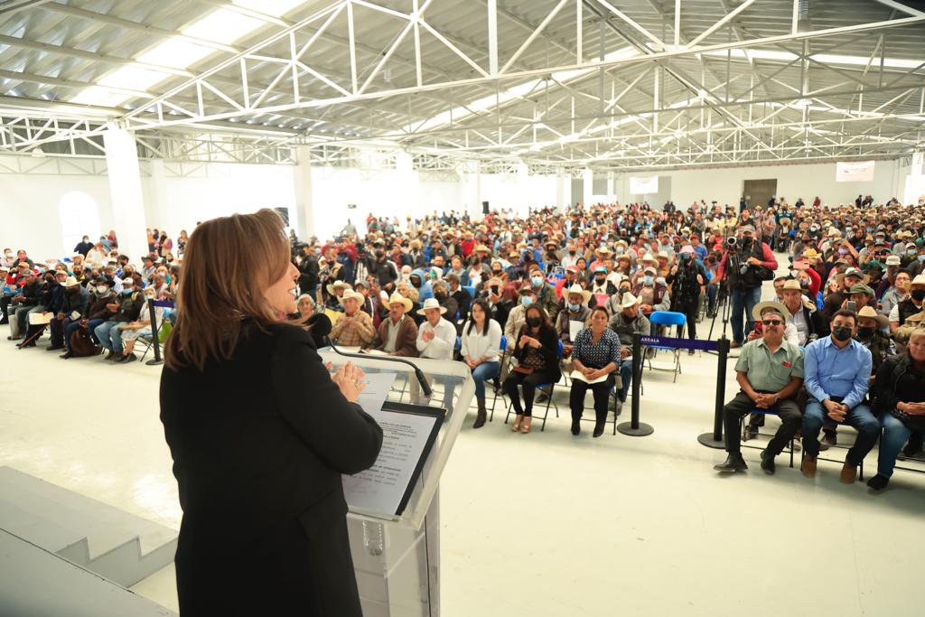 En el auditorio de la demarcación, la mandataria resaltó que el objetivo del programa es mejorar el rendimiento de pequeños y medianos cultivos como parte de las acciones para el fomento de la Autosuficiencia Alimentaria.