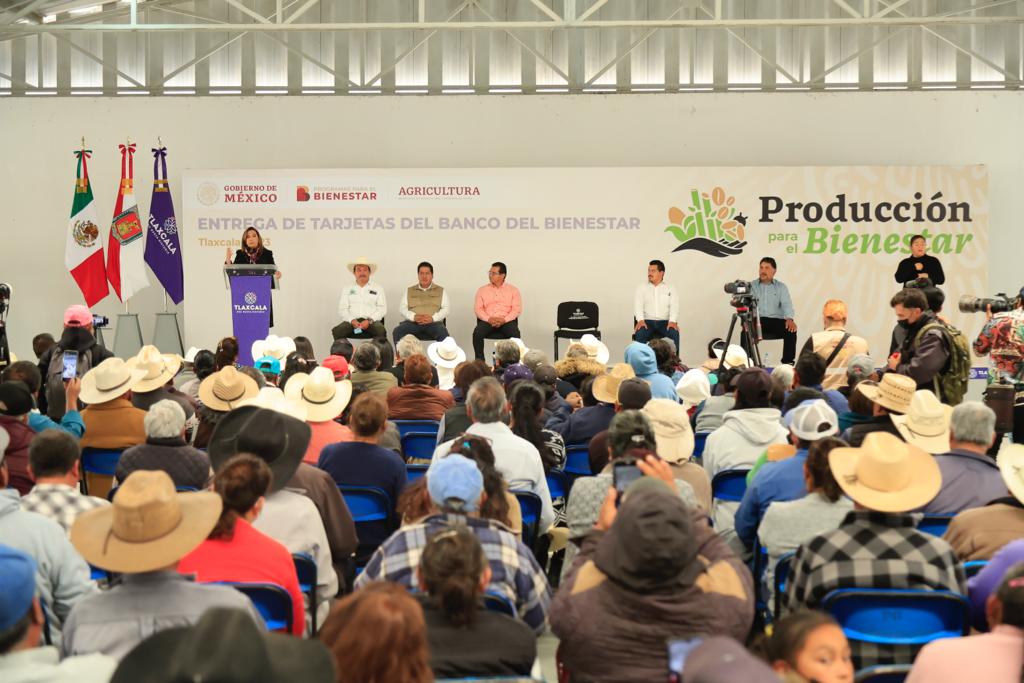 La gobernadora Lorena Cuéllar Cisneros encabezó la entrega de mil 268 tarjetas del Banco del Bienestar a campesinos de Hueyotlipan, por las cuales recibirán recursos del Programa de Producción para el Bienestar cercanos a los 10 millones de pesos.