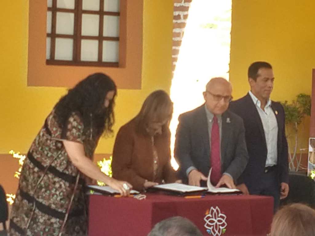 La gobernadora Lorena Cuéllar Cisneros atestiguó la firma del contrato de donación del casco del Ex de Rancho Santo Domingo Tequixtla, otorgado por el exgobernador Tulio Hernández Gómez al Instituto Nacional de Antropología e Historia (INAH), la propiedad ahora forma parte del patrimonio histórico y cultural de México.