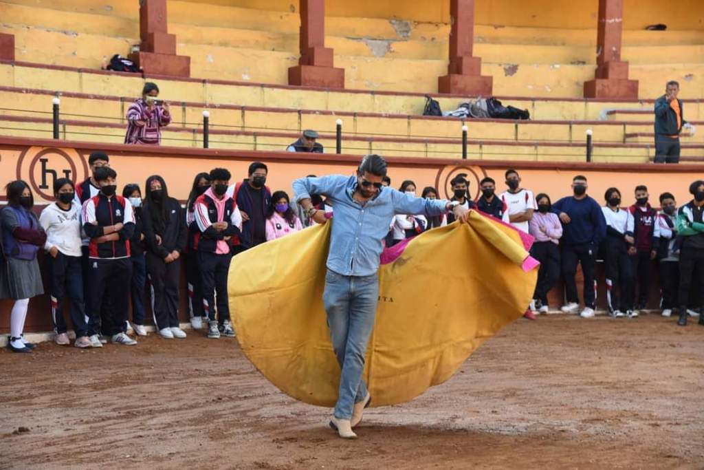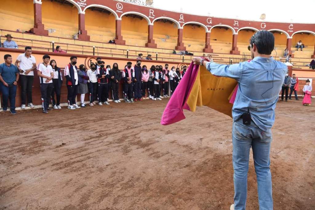 “Calita”, quien torea este sábado 18 de febrero la Corrida de Carnaval, tercera del serial taurino “Tlaxcala 2023”, ofreció en la víspera una clase práctica a jóvenes de escuelas públicas en la Plaza Jorge Aguilar “El Ranchero” promovida por el Gobierno del Estado, a través del Instituto Tlaxcalteca de Desarrollo Taurino en colaboración con el Ayuntamiento de Tlaxcala.