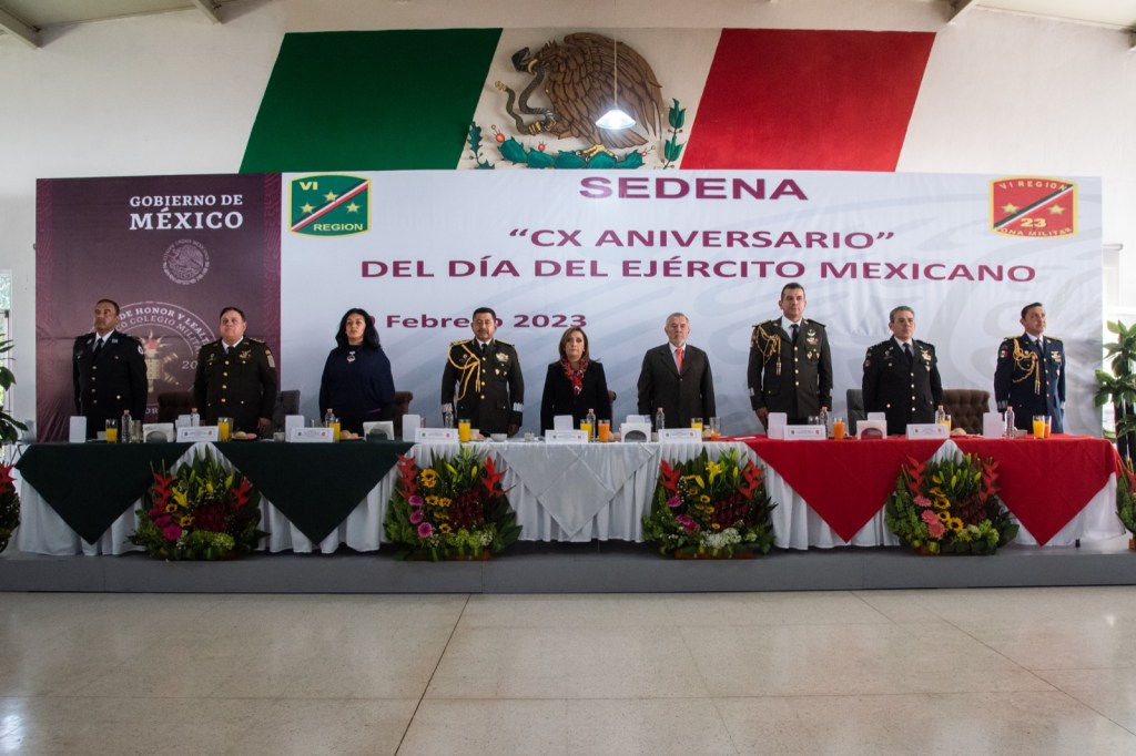 Refirió que este año 2023 se identifica por diferentes grandes conmemoraciones que marcan la historia de México y realizó un recuento de las mismas: “200 años de la fundación del heroico Colegio Militar, 108 años de la creación de la Fuerza Aérea Mexicana, 110 años de la creación del Ejército Mexicano”.