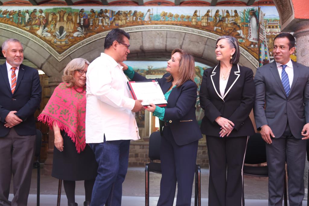 Al reconocer la importante labor realizada por Bello Pérez, así como la de José Pilar Javier Castro, Gonzalo Pérez Pérez y Vanessa Juárez Pizano, quienes obtuvieron menciones honoríficas, la mandataria estatal reafirmó el compromiso de su gobierno para que más tlaxcaltecas ejerzan su derecho a la cultura, la defensa y promoción del patrimonio, así como la dignificación de la infraestructura cultural.