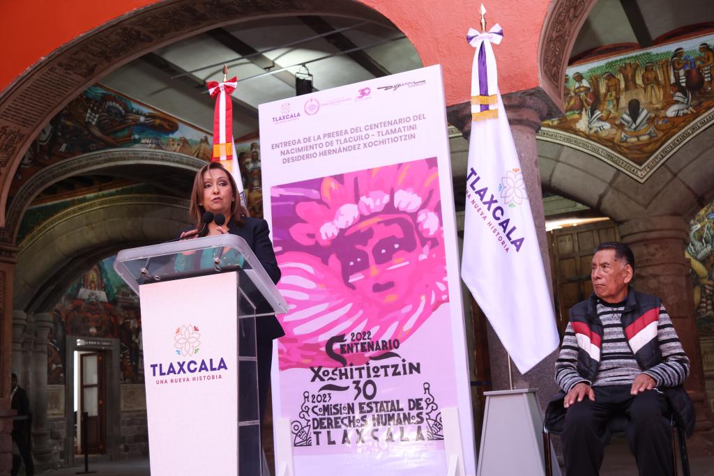Durante la ceremonia realizada en el marco de la conmemoración del XXX aniversario de la Comisión Estatal de Derechos Humanos (CEDH) y a 100 años del nacimiento del muralista tlaxcalteca, la titular del Ejecutivo local destacó el legado que el artista dejó como consejero consultivo fundador del organismo autónomo.
