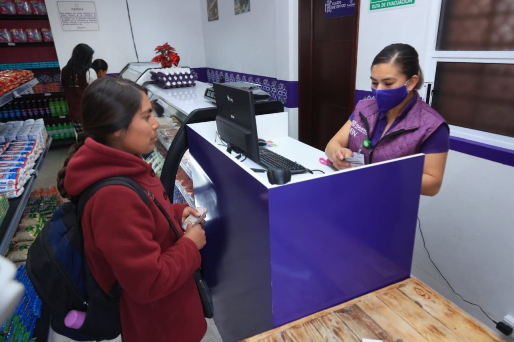 “Ellas reciben de manera mensual un apoyo de mil pesos para la adquisición de productos de la canasta básica en la también tienda de abasto social, y si los beneficiarios quieren pueden canjearlos por artículos o comida, esta unidad igualmente está abierta al público en general”, indicó la mandataria estatal.