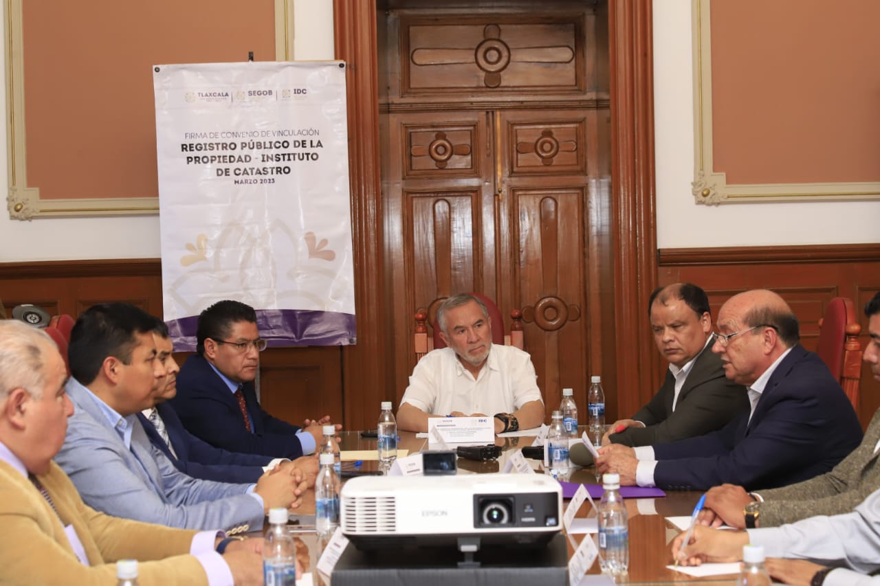 El titular de la Secretaría de Gobierno (Segob), Sergio González Hernández encabezó la firma del convenio de colaboración y vinculación interinstitucional entre el Registro Público de la Propiedad y el Instituto de Catastro del Estado (IDC).