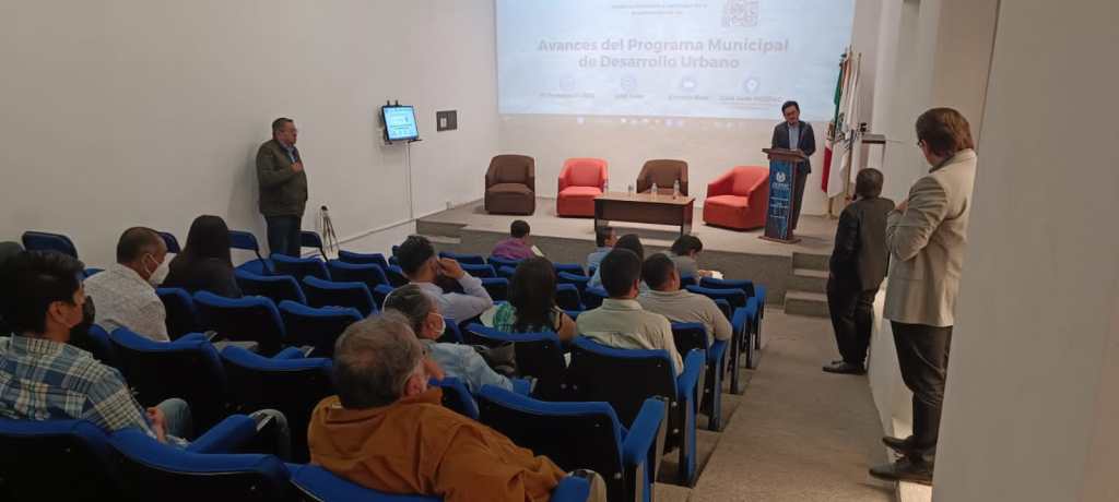 Daniel Tapia Quintana, Coordinador General del Instituto Municipal de Planeación (IMPLAN), compartió el progreso de los esfuerzos metodológicos y de estrategia por crear una ciudad más compacta y sustentable, donde destacó el alcance del 100 por ciento en rubros de revisión del marco jurídico y de planeación, localización y límite territorial, estudio del PMDU del 2016, así como en el análisis de personas.