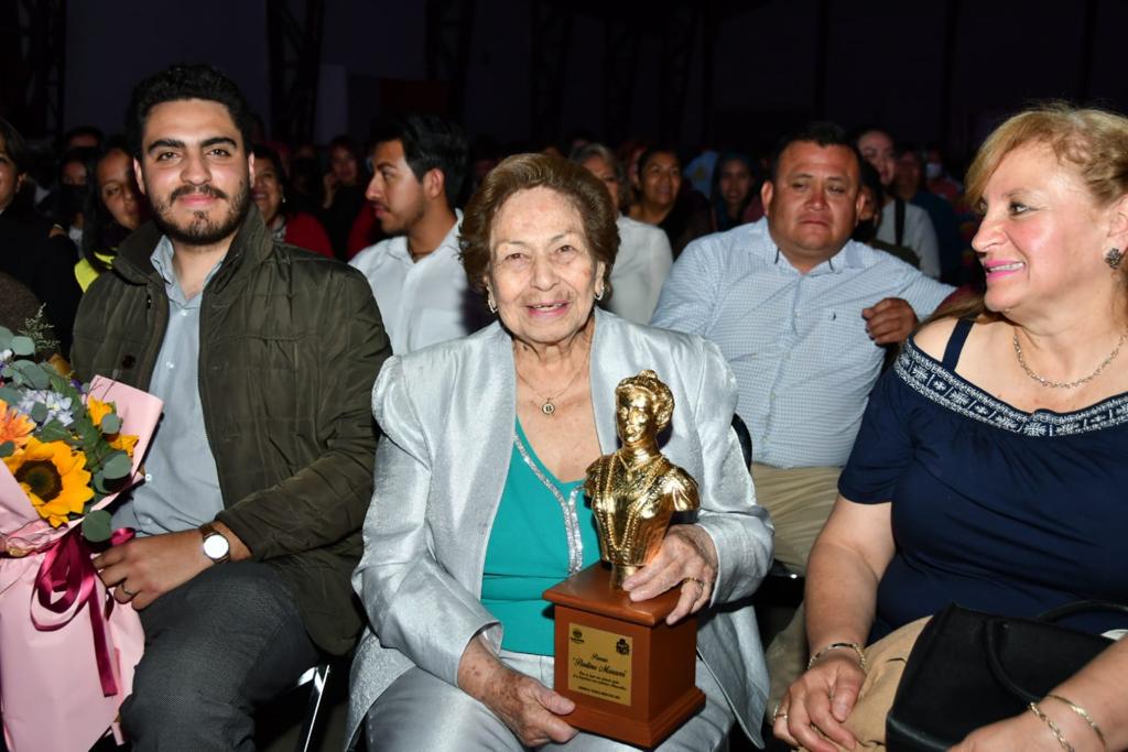 “Entregamos este premio a una mujer altruista y bondadosa, reconocida también por su trayectoria como profesora, en la que por 35 años formó a generaciones de ciudadanos comprometidos y orgullosos de su tierra. Fue fundadora de la “Casa del Anciano”, de la guardería “Cuamanco”, y ha sido una importante promotora de los derechos de la mujer”, mencionó.